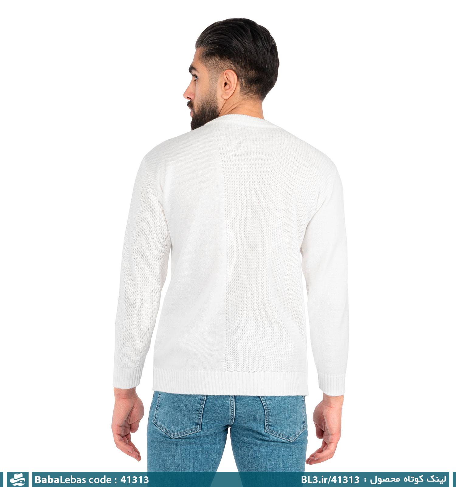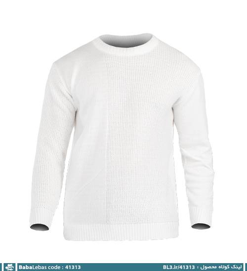 بافت مردانه یقه گرد سفید فری سایز طرح دار مدل 41313
