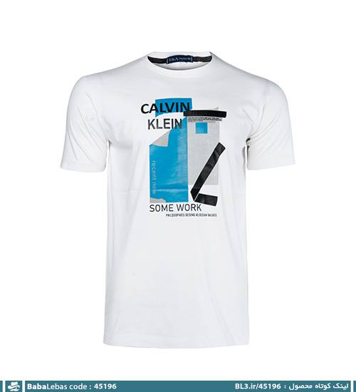 تیشرت یقه گرد مردانه سفید طرح دار مدل 45196