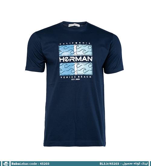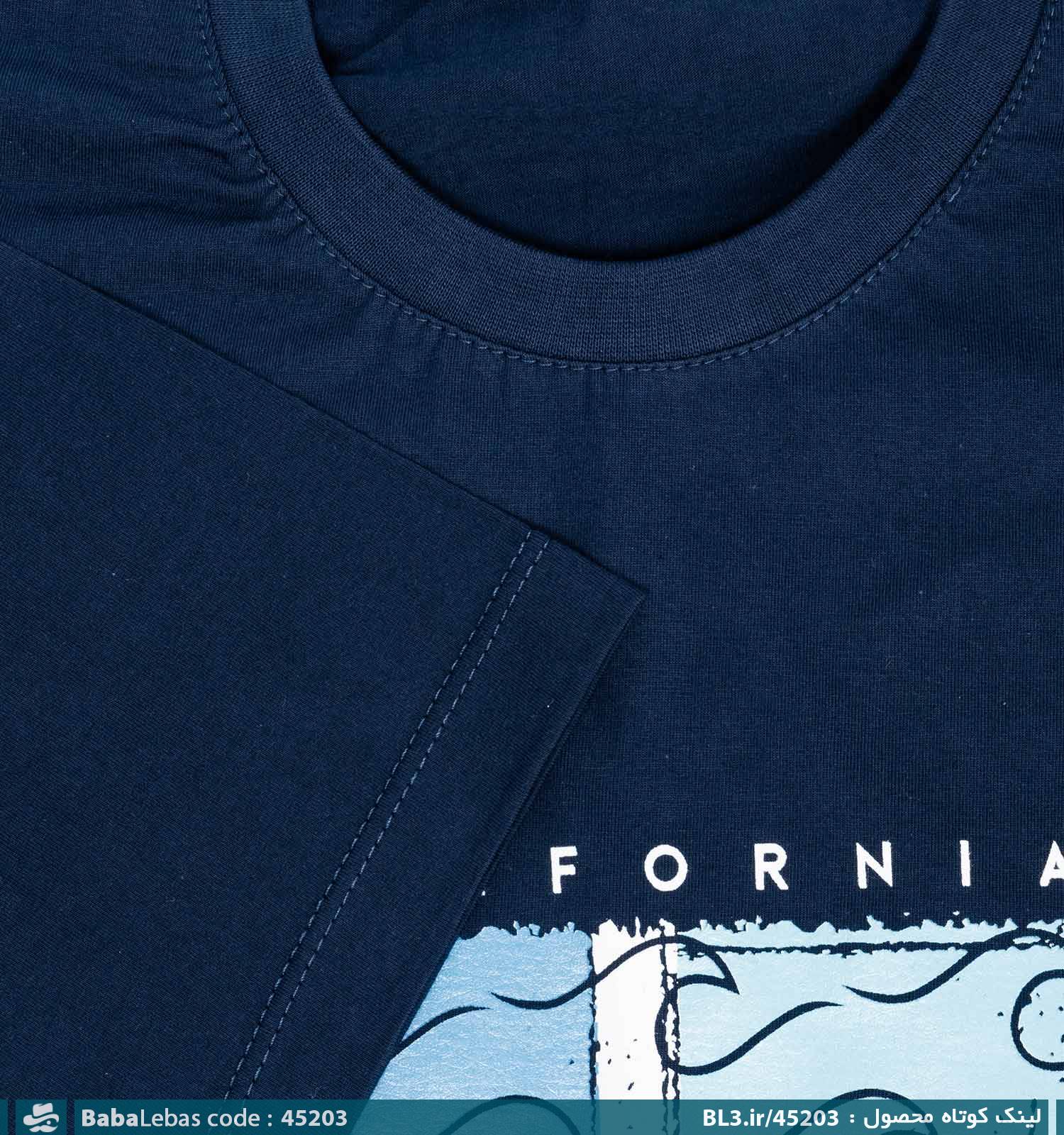 تیشرت یقه گرد مردانه سرمه ای طرح دار مدل 45203