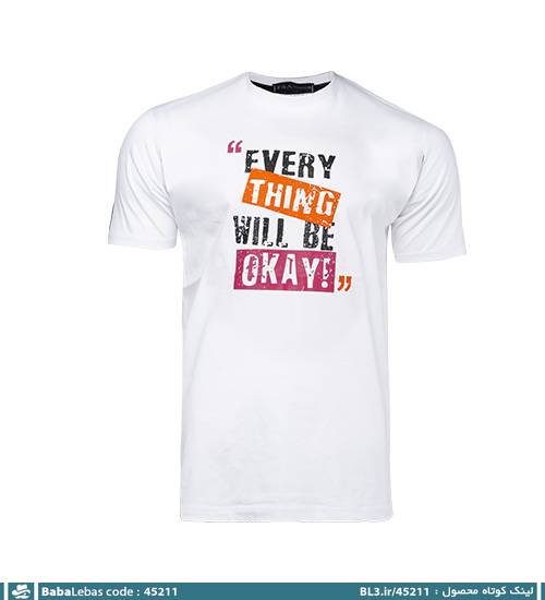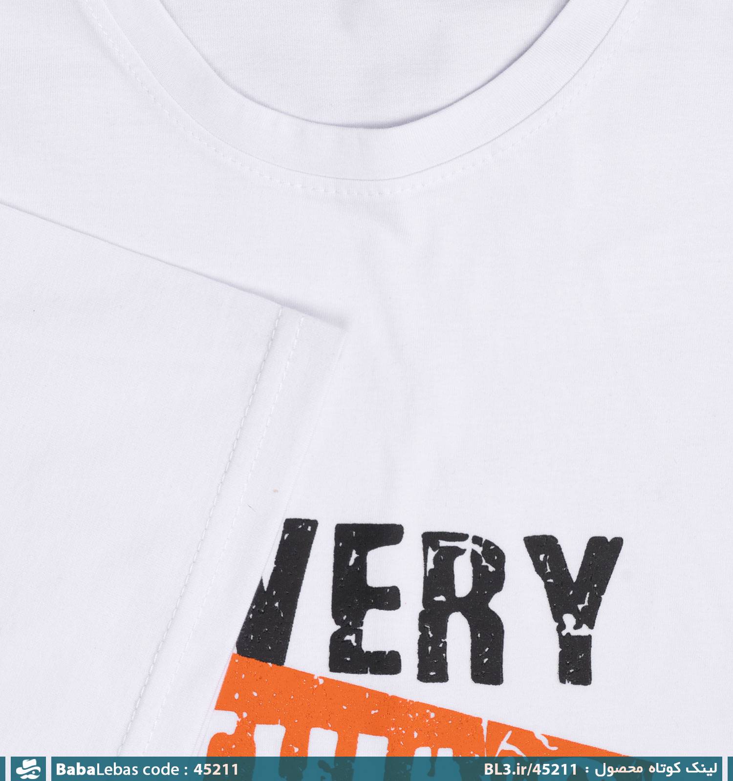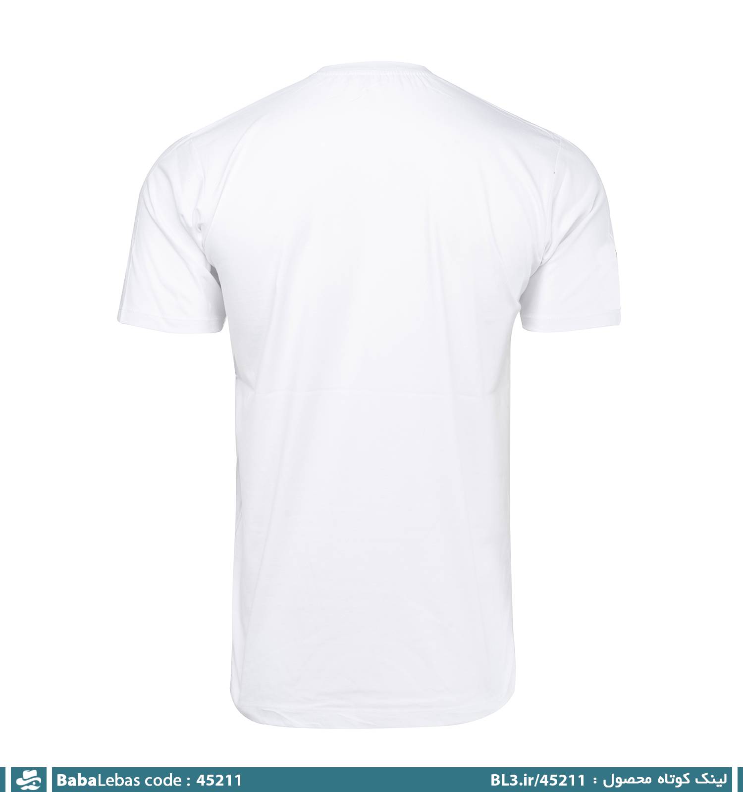 تیشرت یقه گرد مردانه سفید پنبه طرح دار مدل 45211