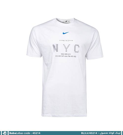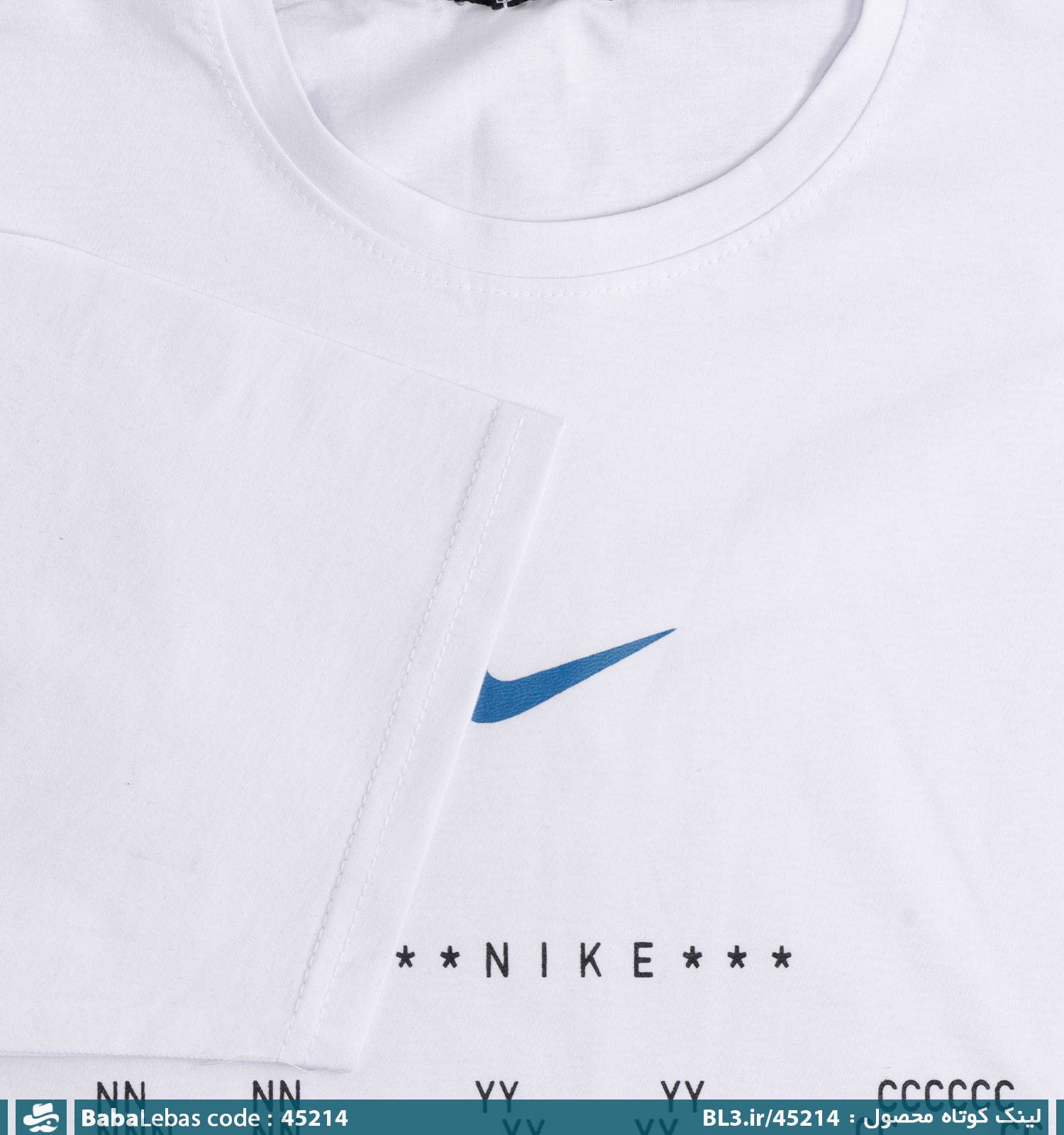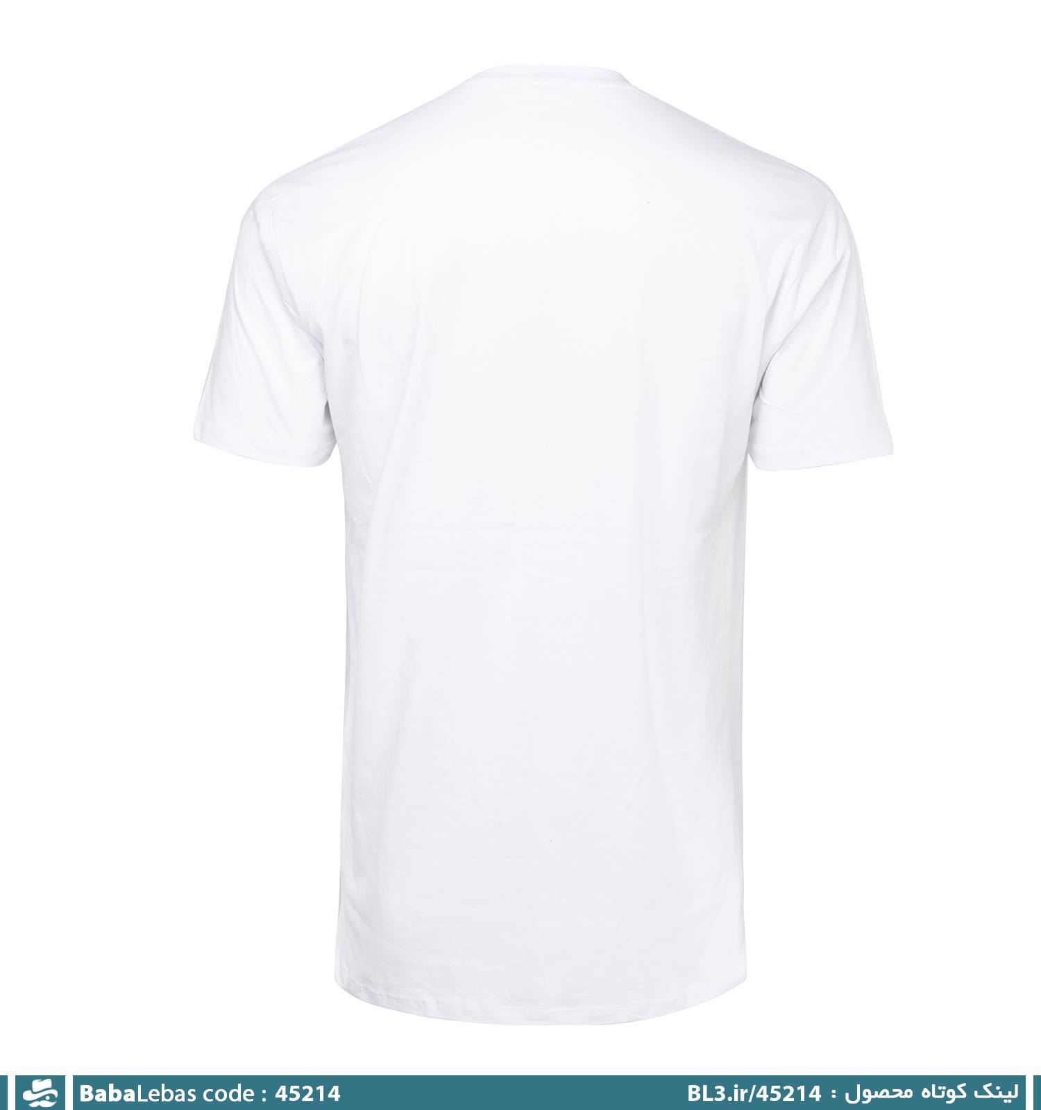 تیشرت یقه گرد مردانه سفید پنبه طرح دار مدل 45214