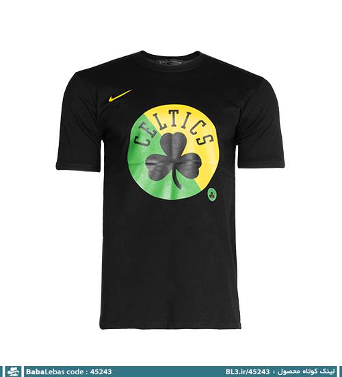 تیشرت یقه گرد مردانه مشکی پنبه طرح دار مدل 45243