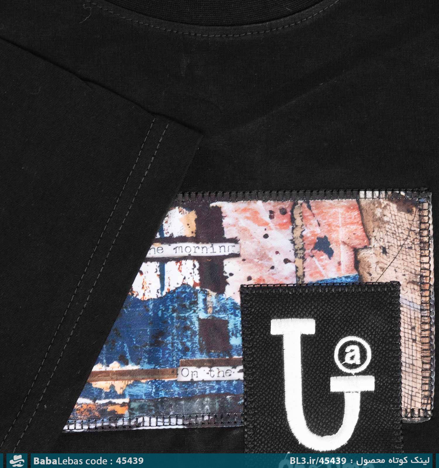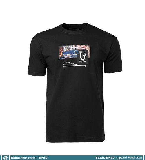 تیشرت یقه گرد مردانه مشکی پنبه طرح دار مدل 45439