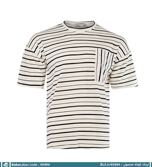 تیشرت یقه گرد مردانه جیب دار راه راه مدل 45494