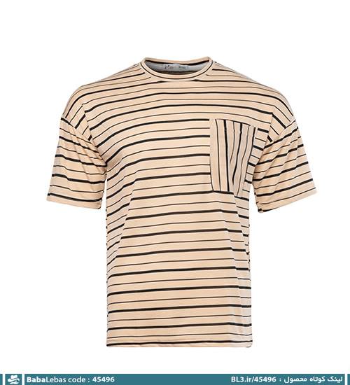 تیشرت یقه گرد مردانه جیب دار راه راه مدل 45496