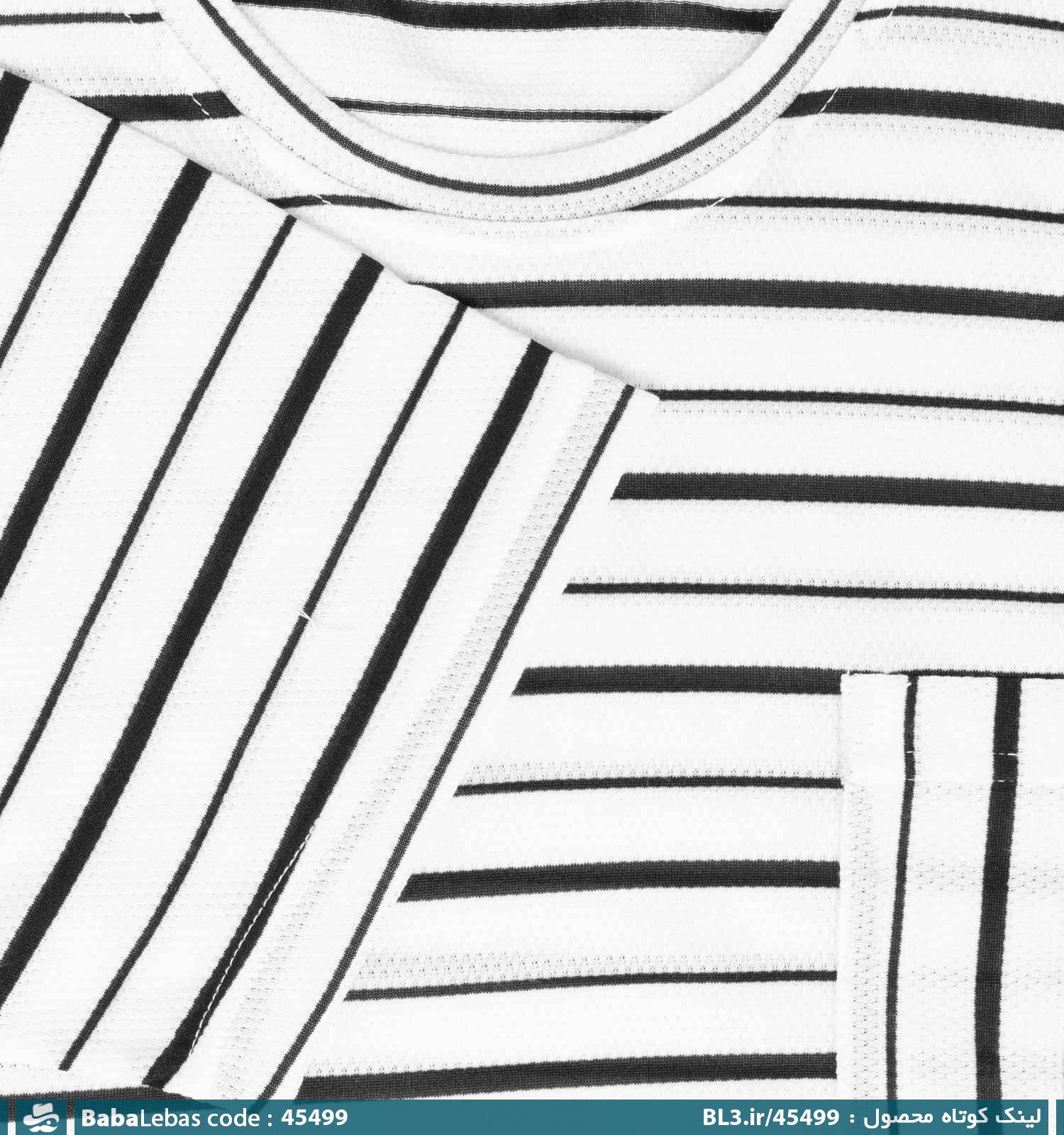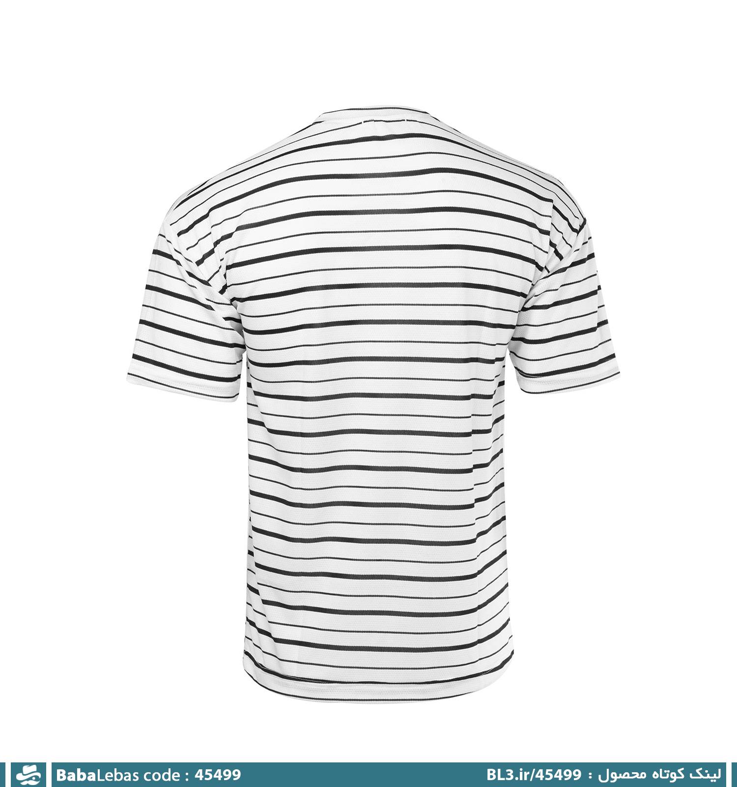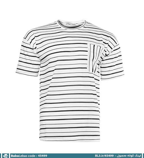 تیشرت یقه گرد مردانه جیب دار سفید راه راه مدل 45499