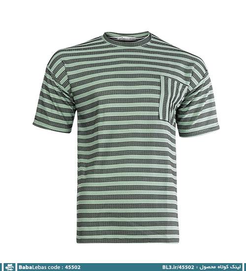 تیشرت یقه گرد مردانه جیب دار راه راه مدل 45502