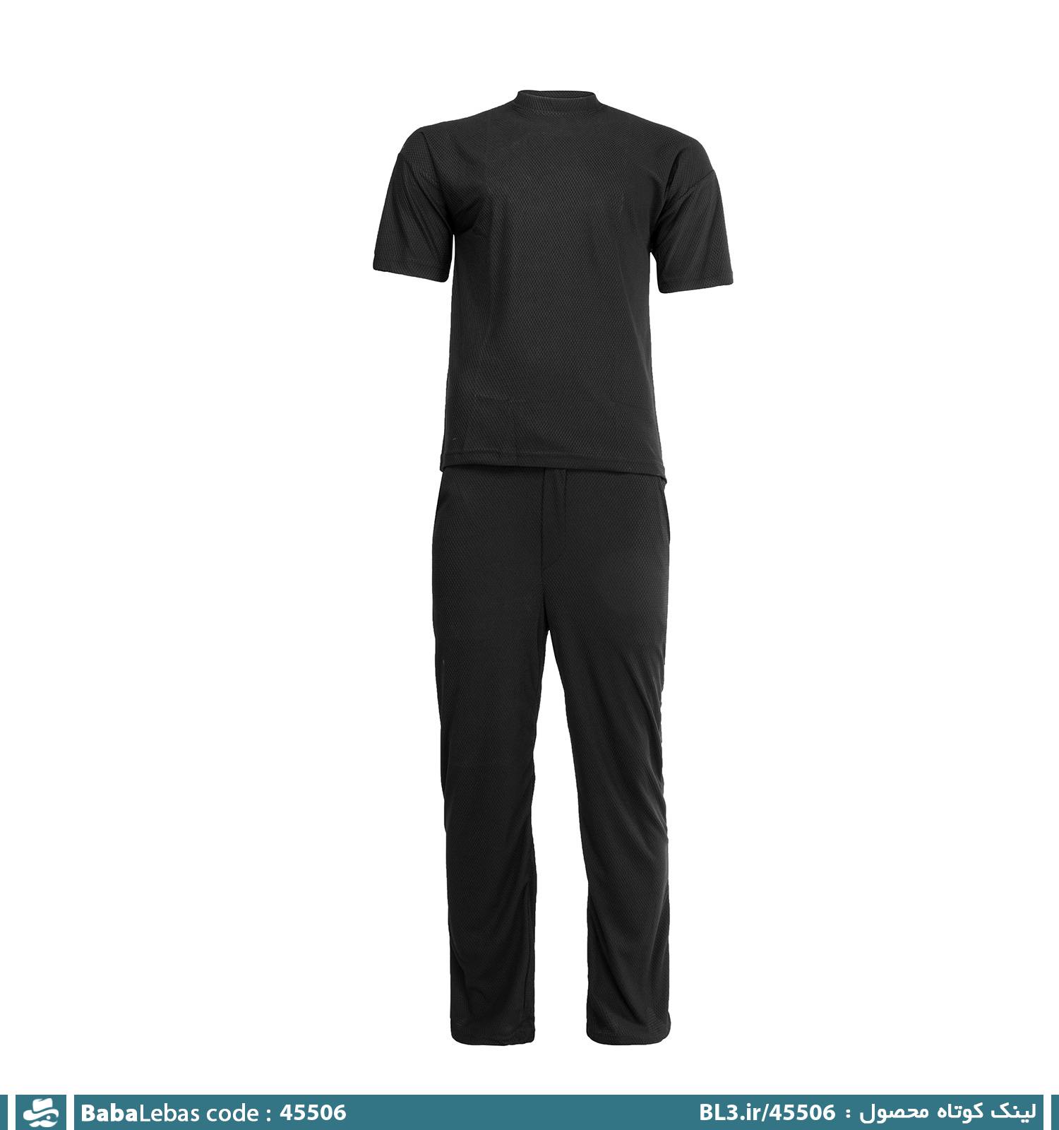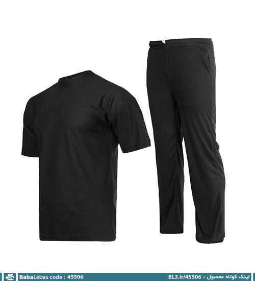 ست مردانه تیشرت و شلوار مشکی ساده یقه گرد مدل 45506