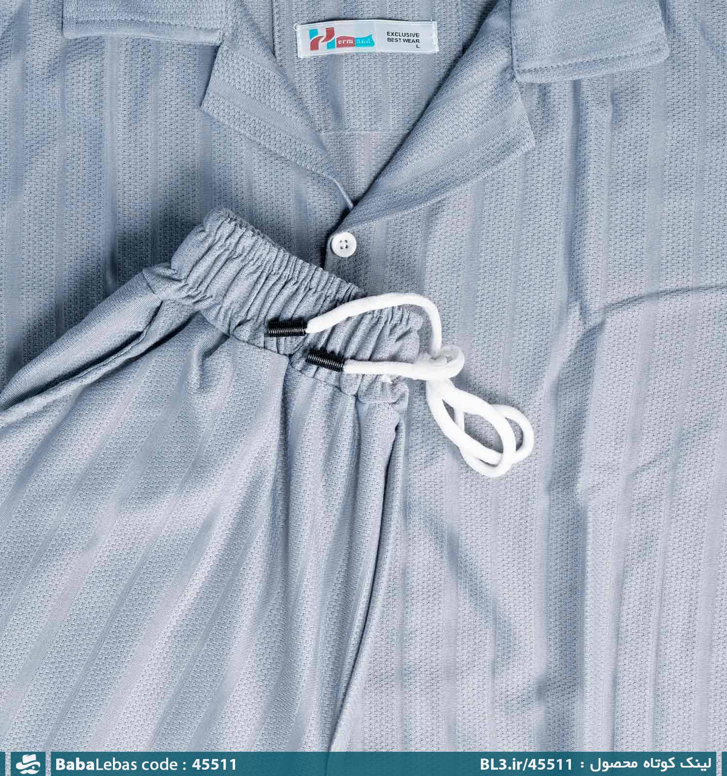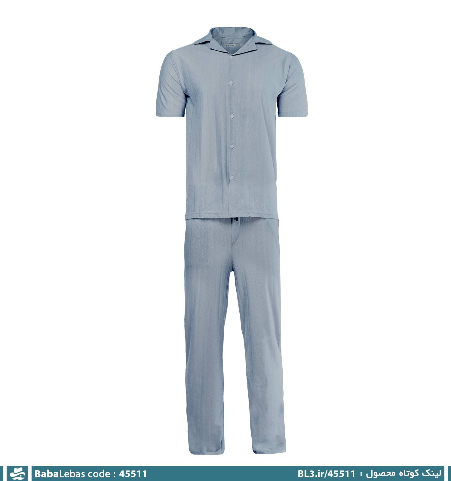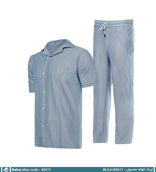 ست مردانه پیراهن و شلوار آستین کوتاه طوسی طرحدار مدل 45511