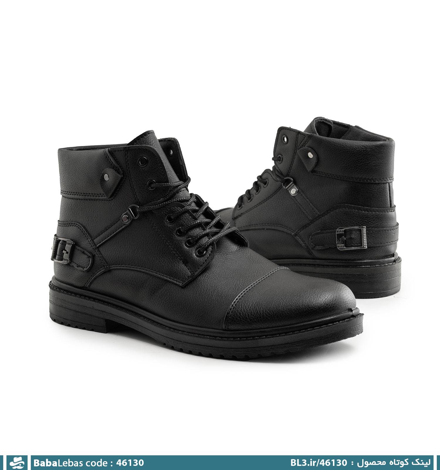 نیم بوت چرم مصنوعی مردانه مشکی بند دار 46130