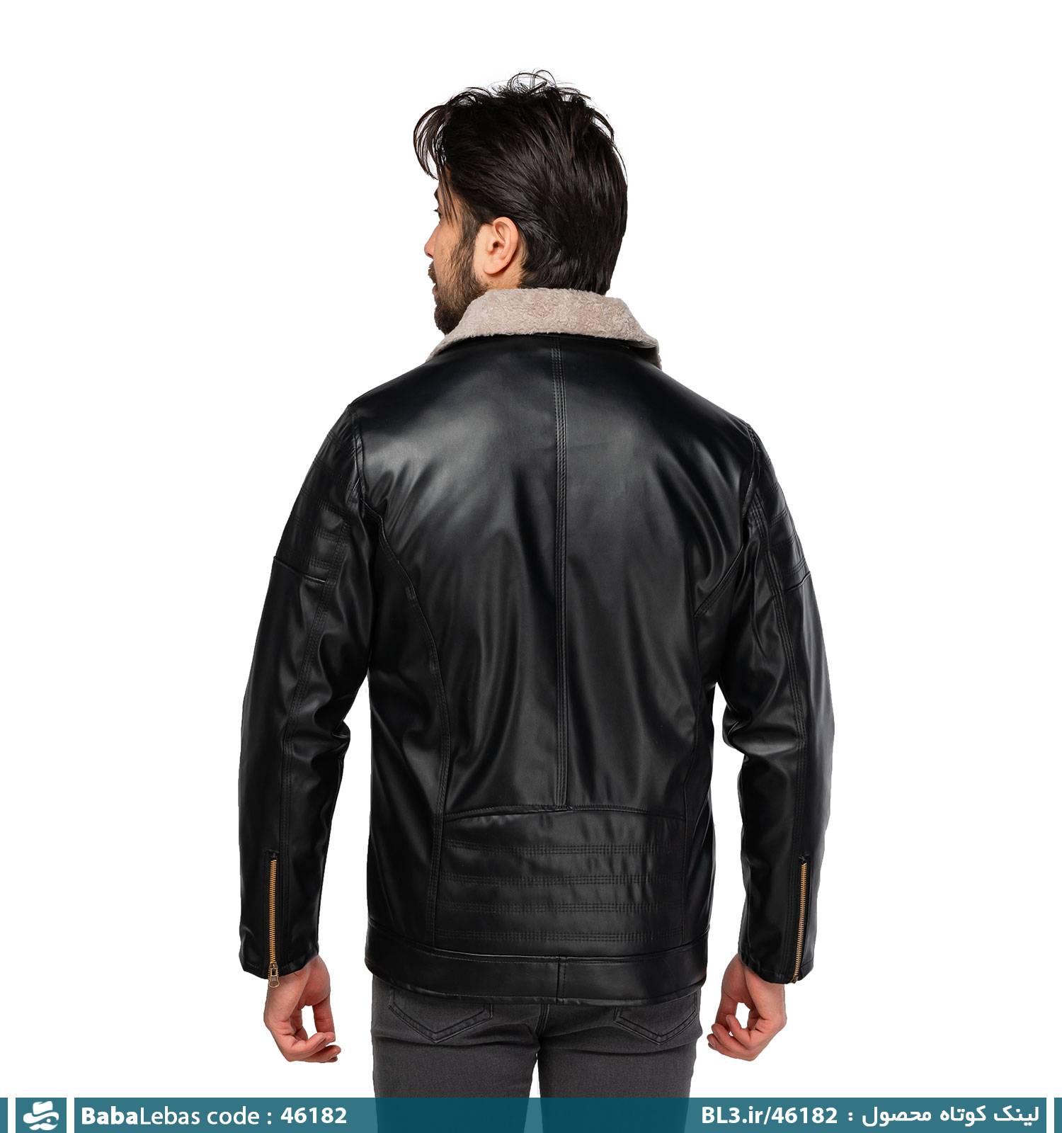 کاپشن چرم مصنوعی اسپرت مشکی مدل 46182
