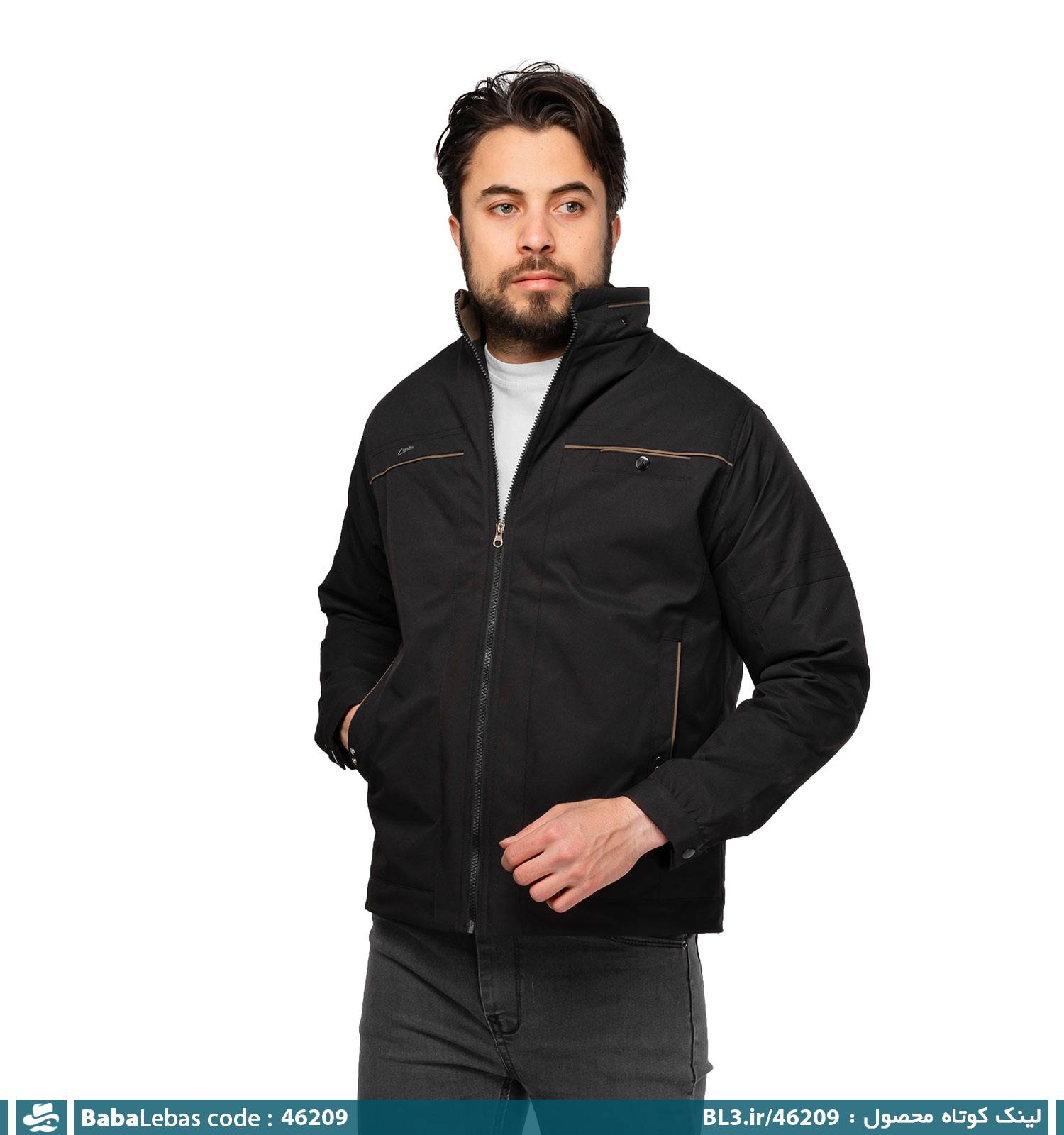 کاپشن مردانه کتان زیپ دار مشکی مدل 46209