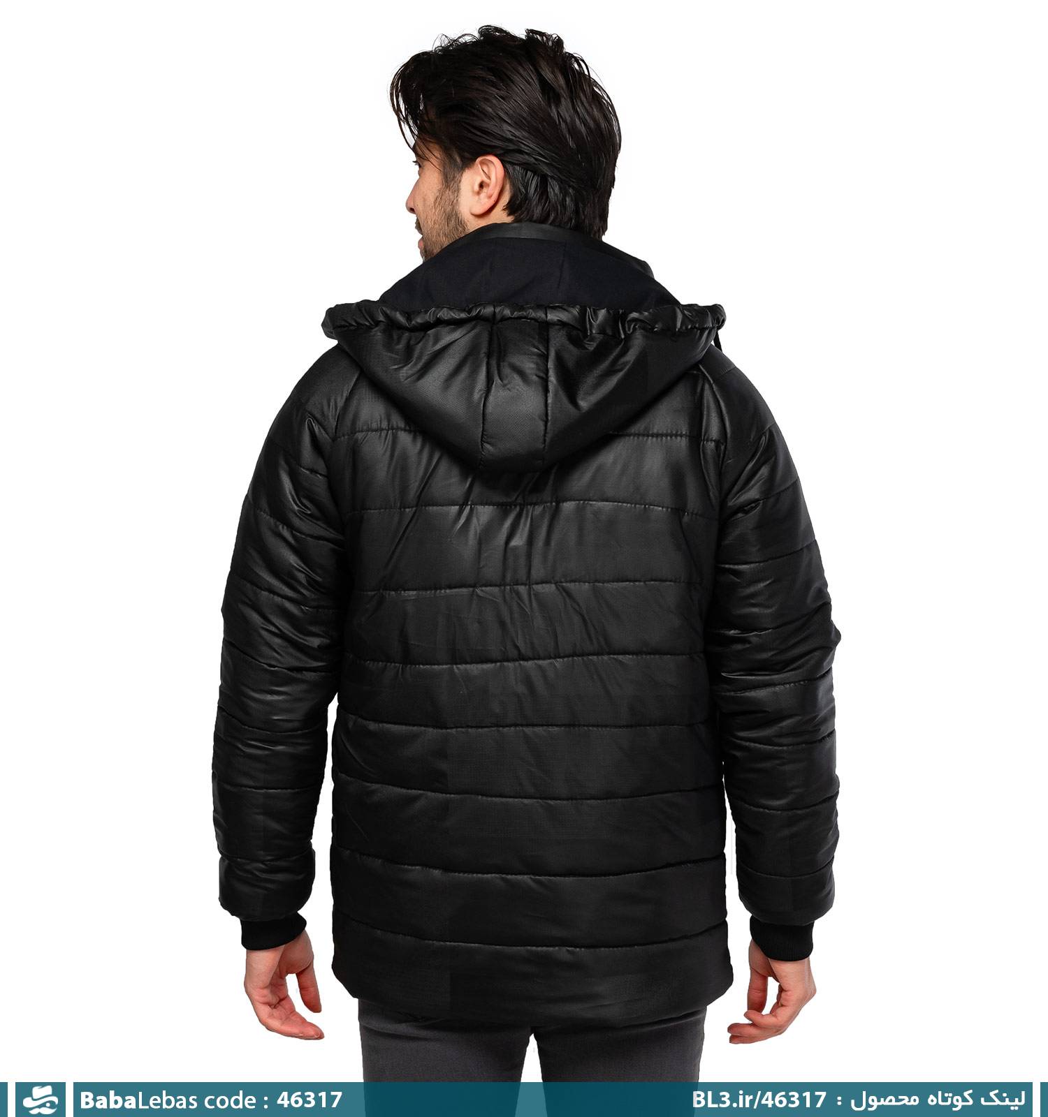 کاپشن سیلیکونی دو رو مردانه کلاه دار مشکی مدل 46317