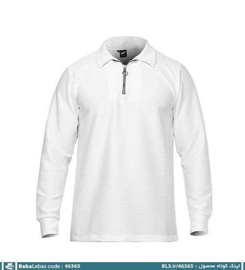 بلوز دورس نیم زیپ یقه دار سفید ساده مدل 46365
