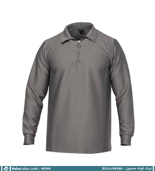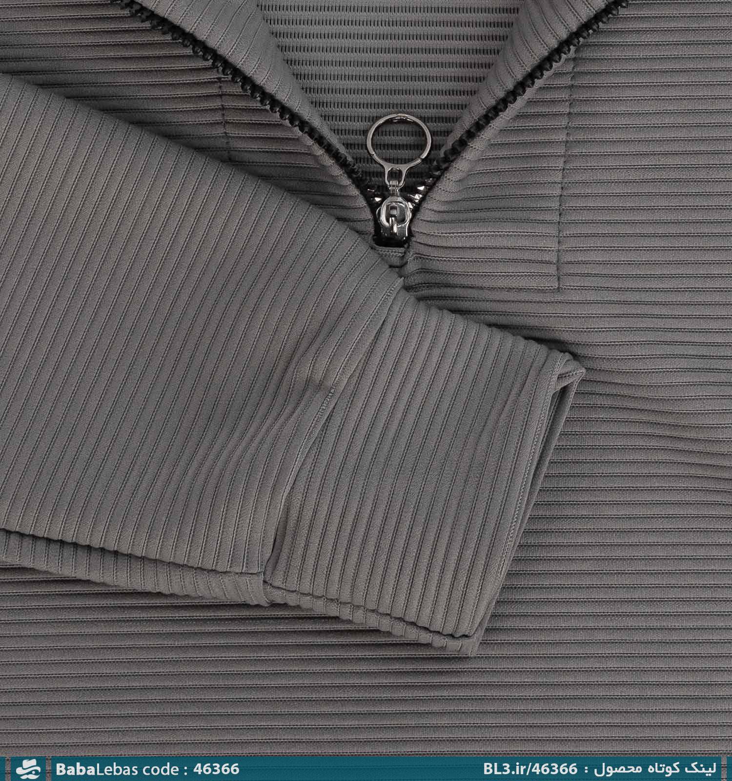 بلوز دورس نیم زیپ یقه دار طوسی ساده مدل 46366