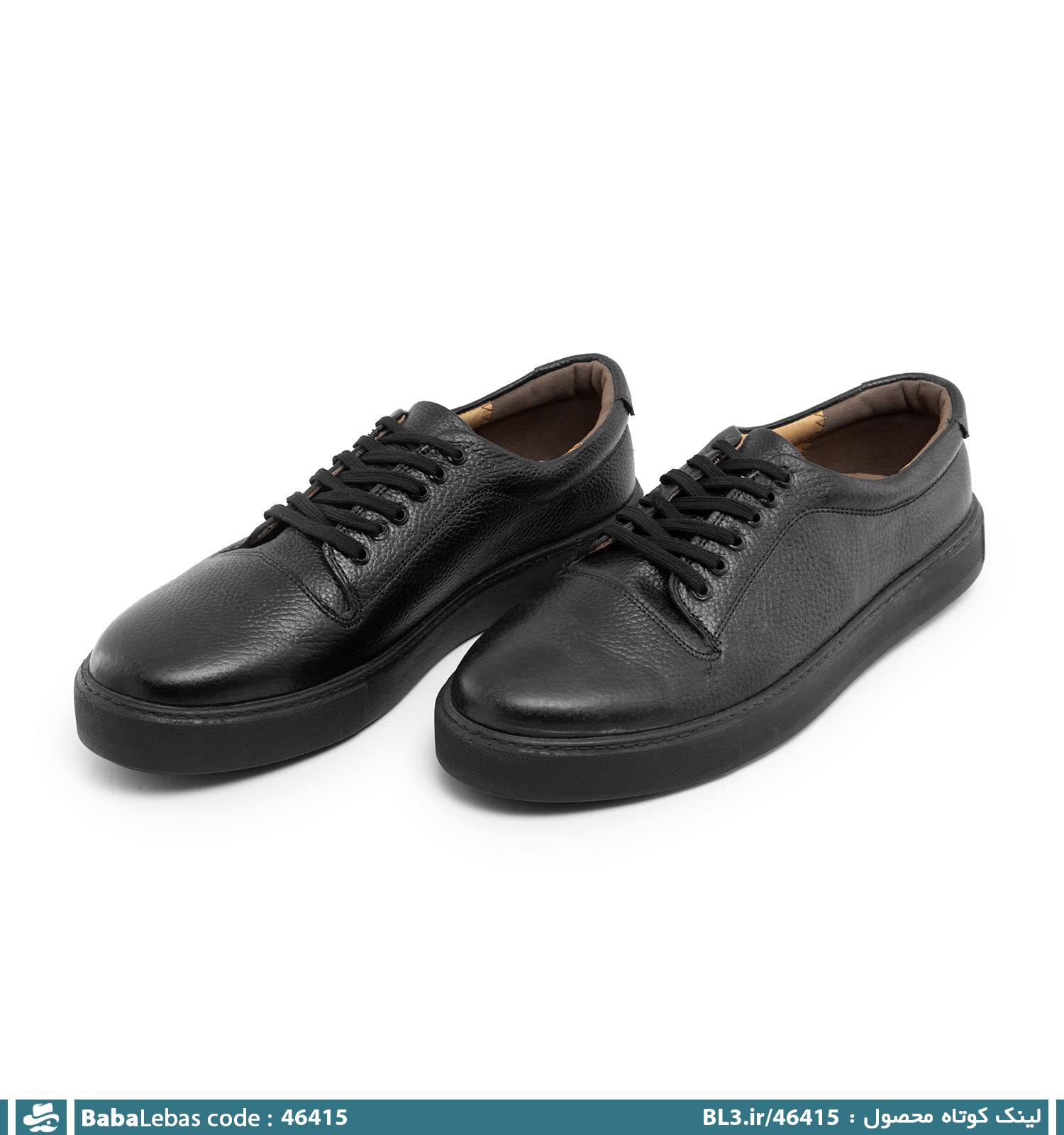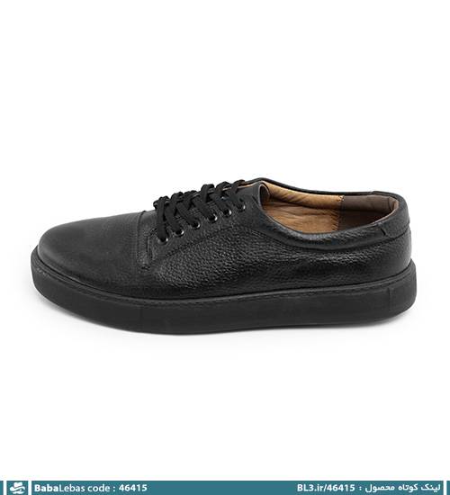کفش روزمره چرم طبیعی مردانه بند دار مشکی مدل 46415
