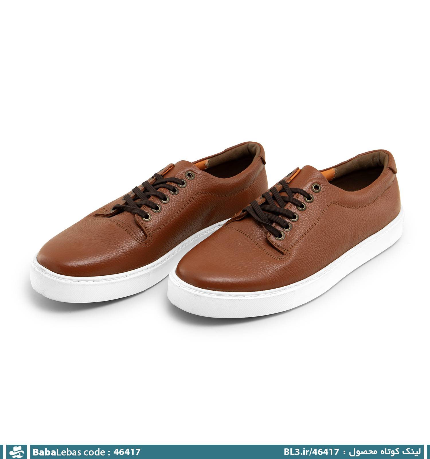 کفش روزمره چرم طبیعی مردانه بند دار عسلی مدل 46417