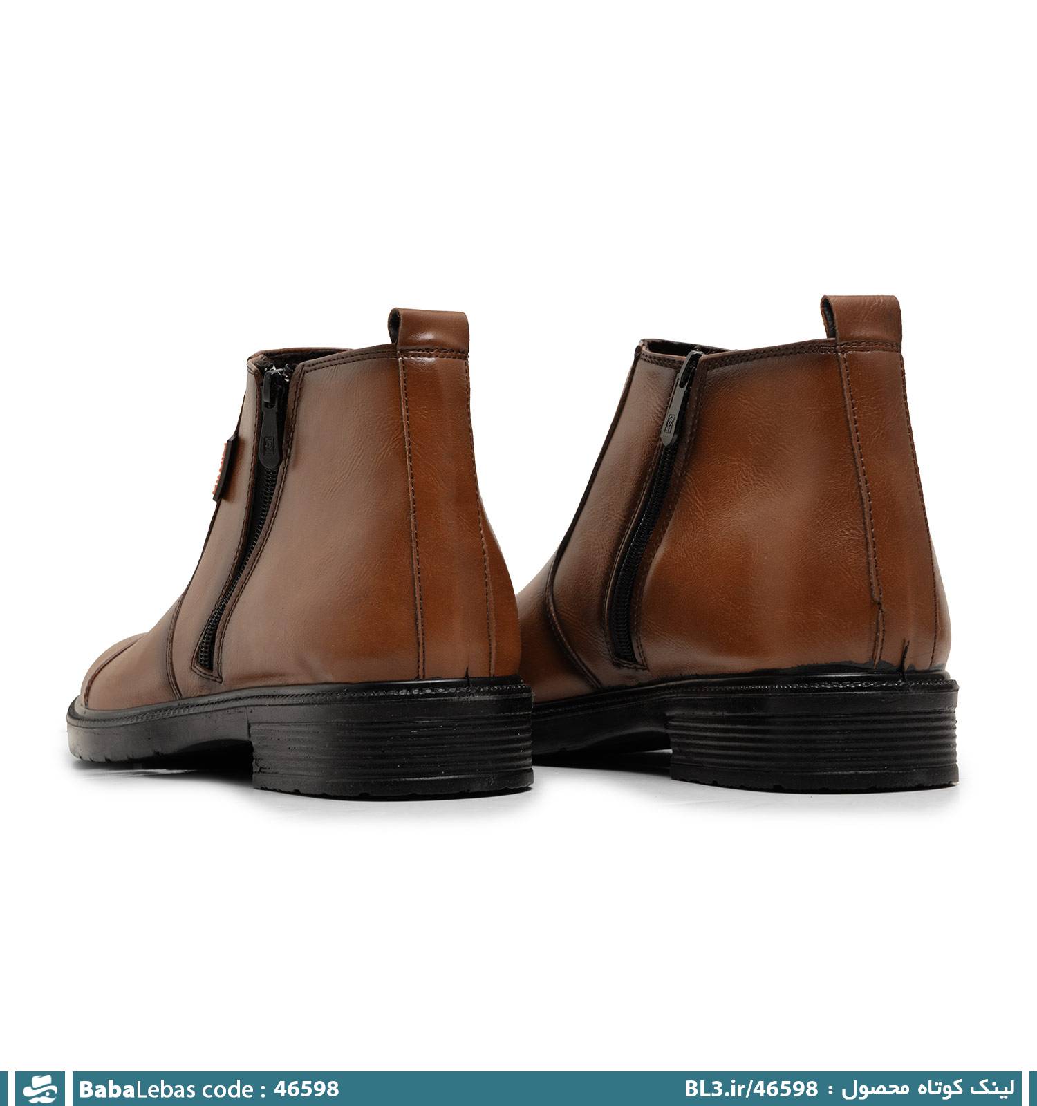 نیم بوت چرم مصنوعی مردانه عسلی زیپ دار مدل 46598