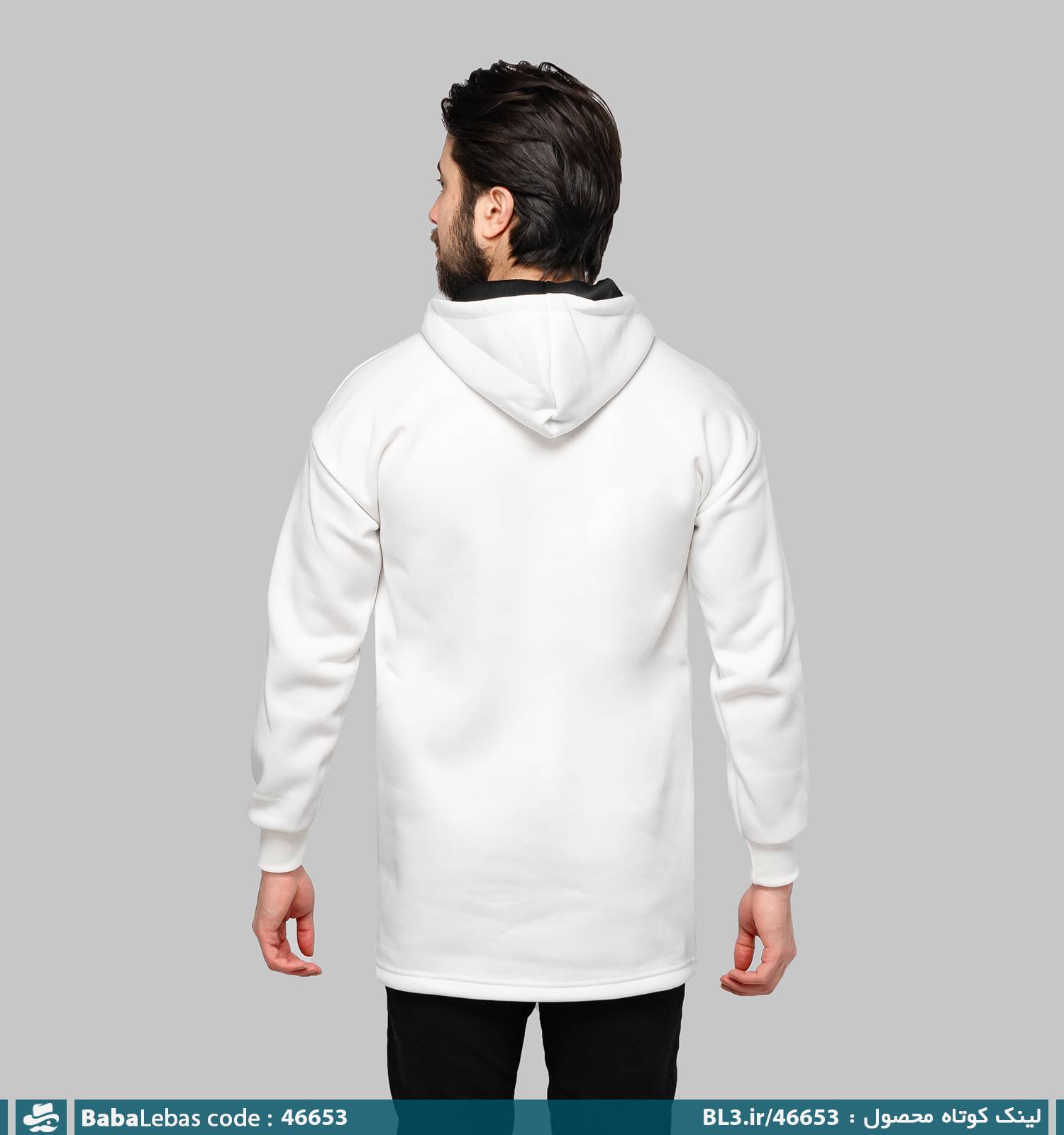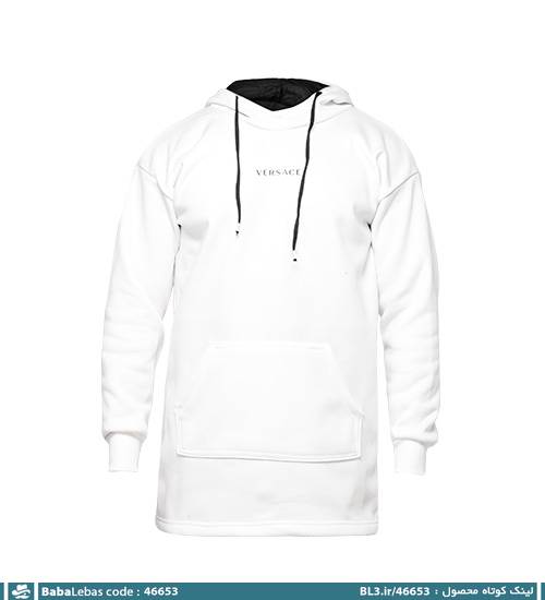 هودی مردانه کلاه دار سفید ساده مدل 46653