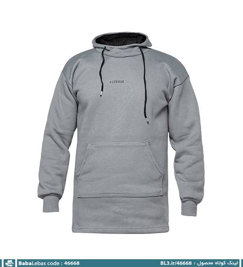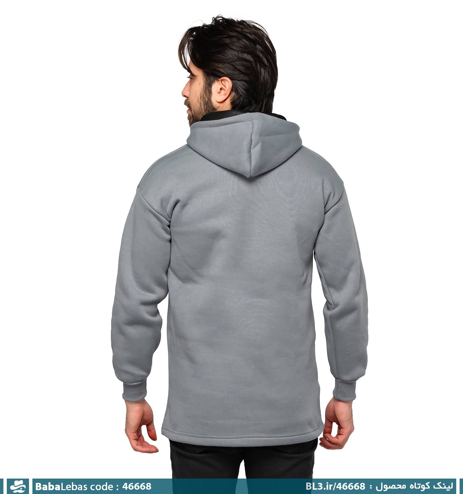 هودی مردانه کلاه دار طوسی ساده مدل 46668