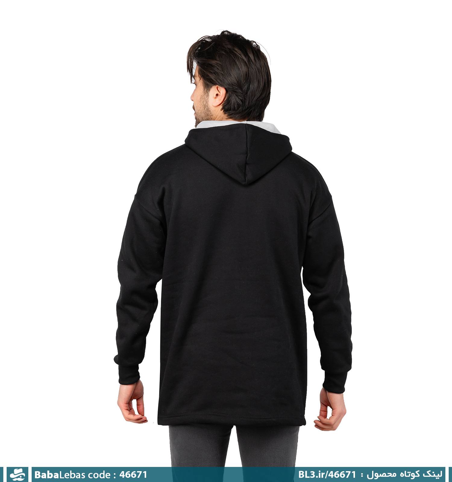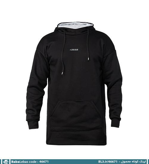 هودی مردانه کلاه دار مشکی ساده مدل 46671