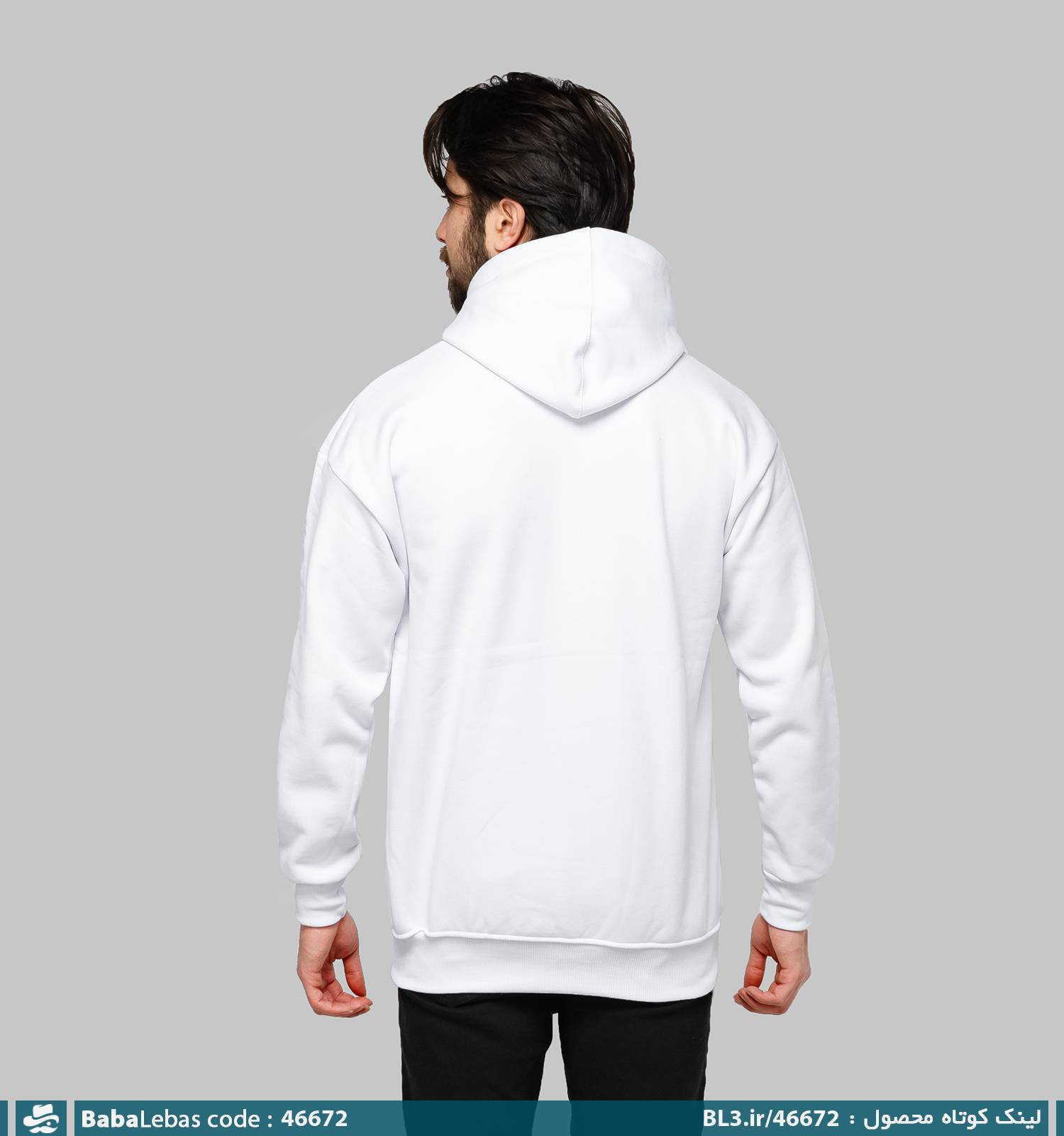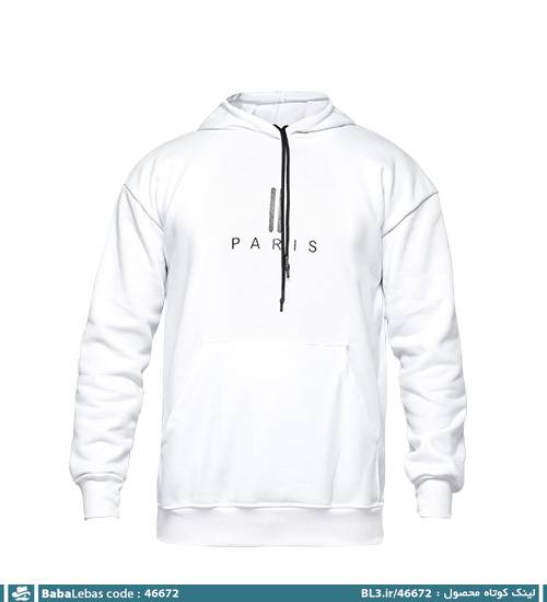 هودی مردانه کلاه دار سفید ساده مدل 46672