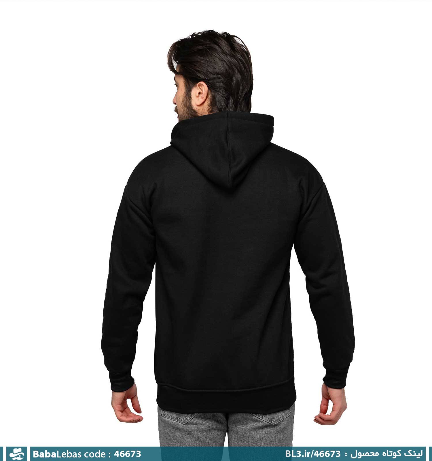 هودی مردانه کلاه دار مشکی ساده مدل 46673