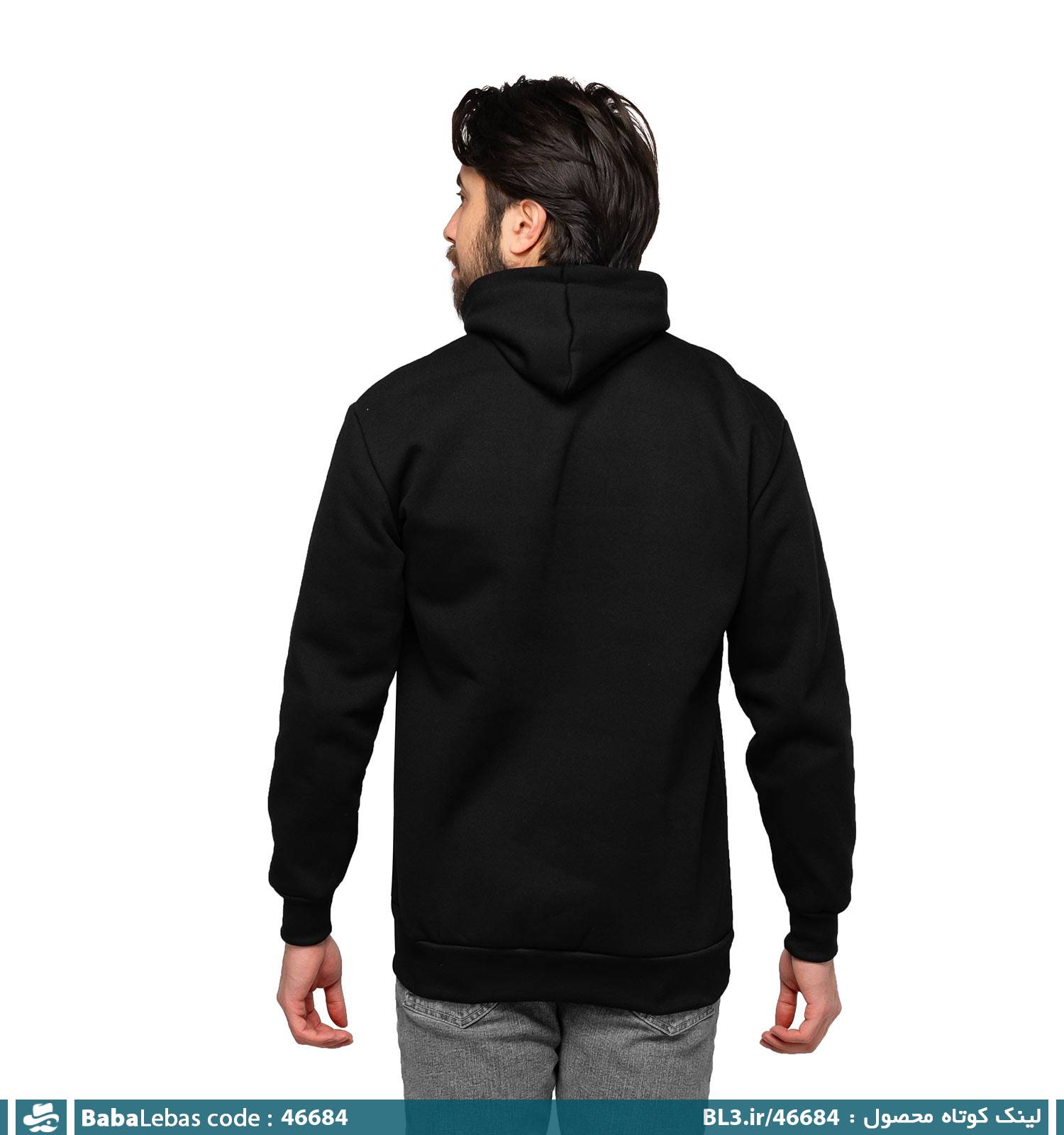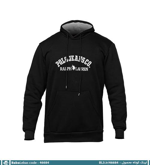 هودی کلاه دار مشکی گلدوزی شده مدل 46684