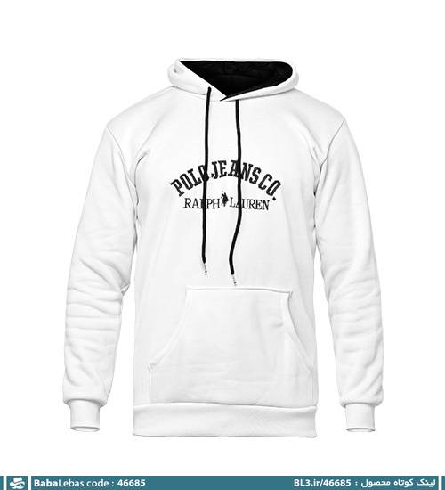 هودی کلاه دار سفید گلدوزی شده مدل 46685