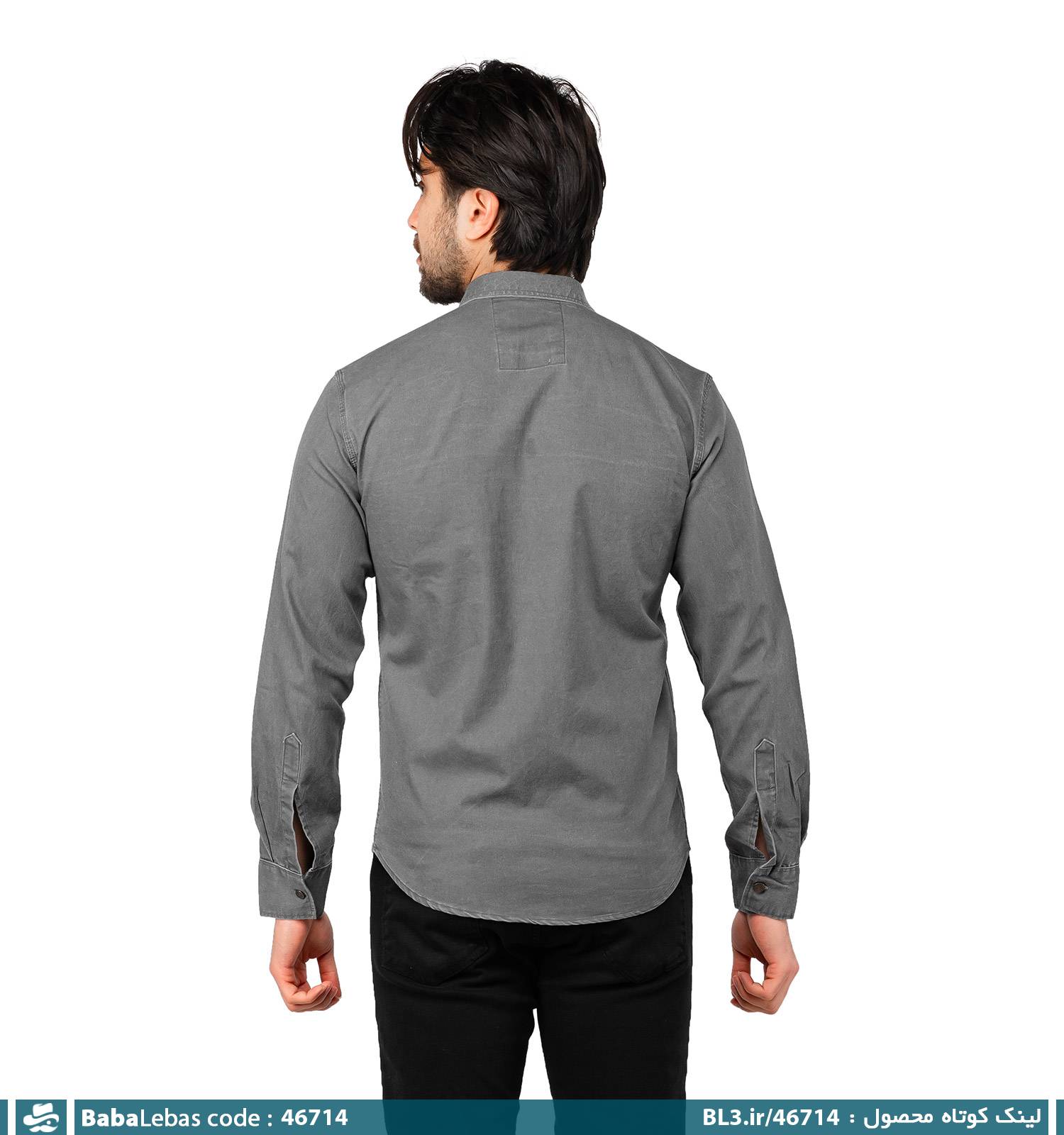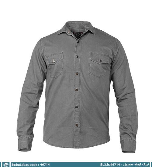 پیراهن اسپرت کتان مردانه آستین بلند ساده طوسی مدل 46714