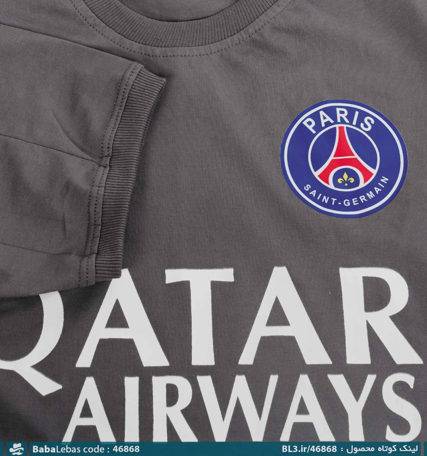 کیت ورزشی پاری سن ژرمن یقه گرد مردانه طوسی مدل 46868