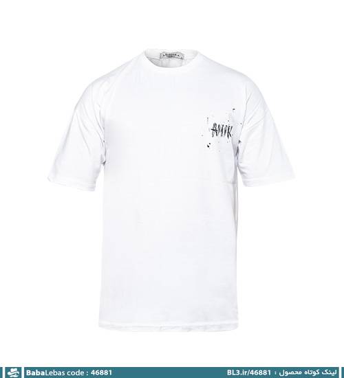 تیشرت یقه گرد مردانه سفید طرح دار مدل 46881