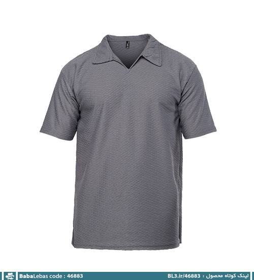تیشرت یقه دار مردانه طوسی ساده مدل 46883