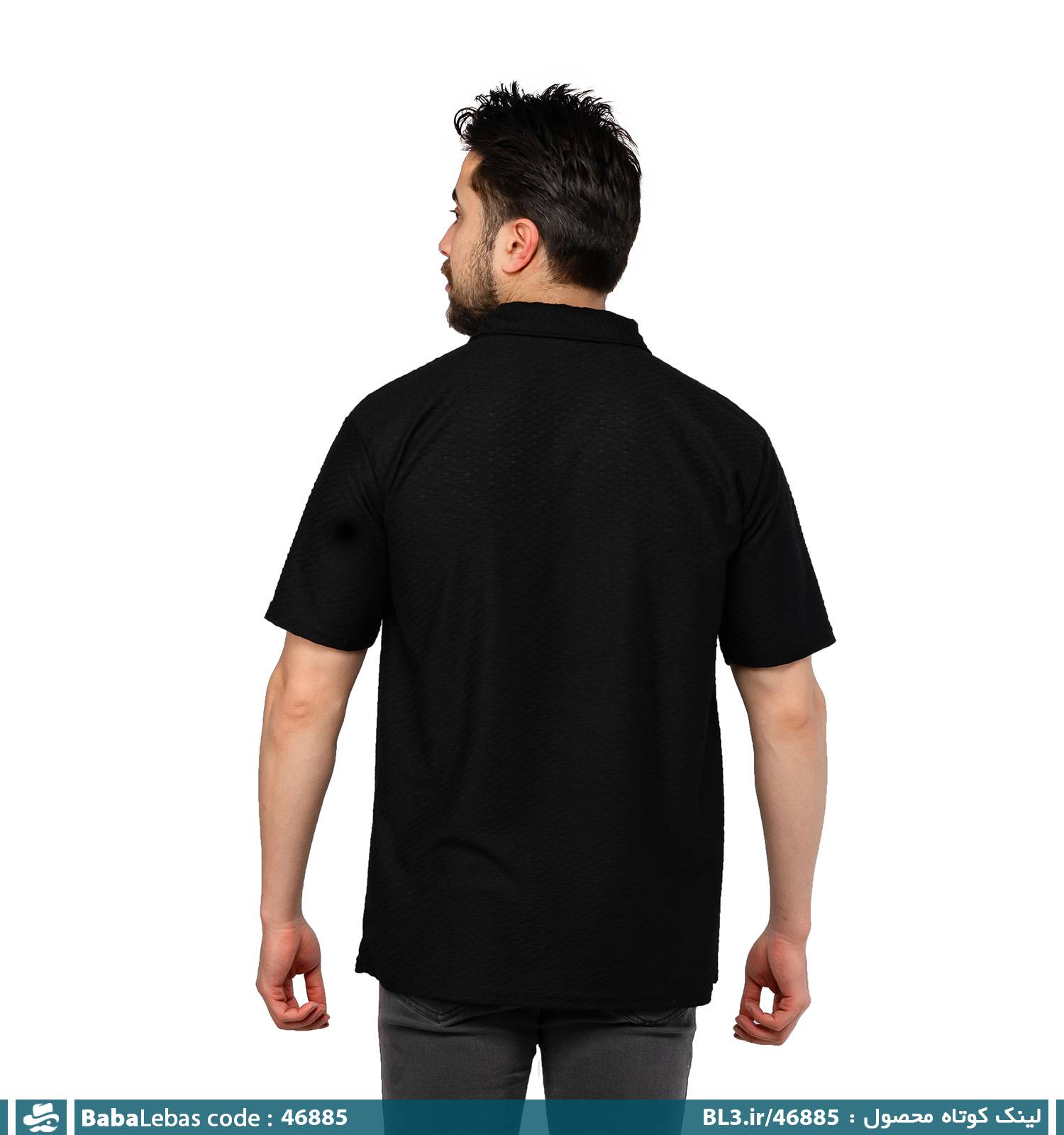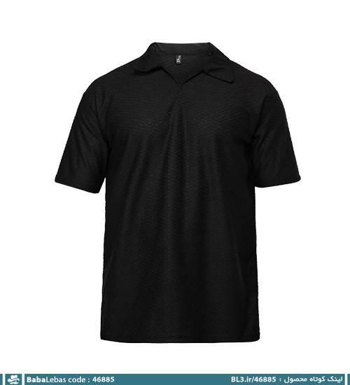 تیشرت یقه دار مردانه مشکی ساده مدل 46885
