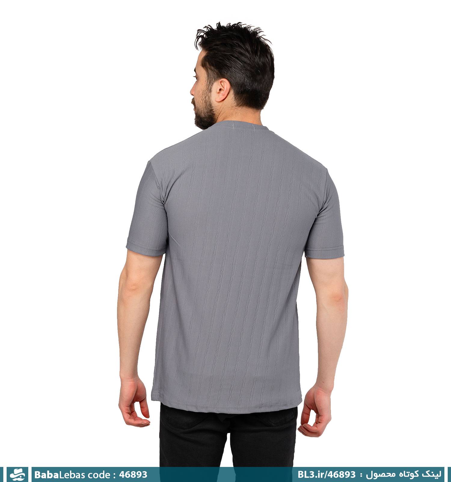 تیشرت یقه گرد مردانه طوسی طرح دار مدل 46893