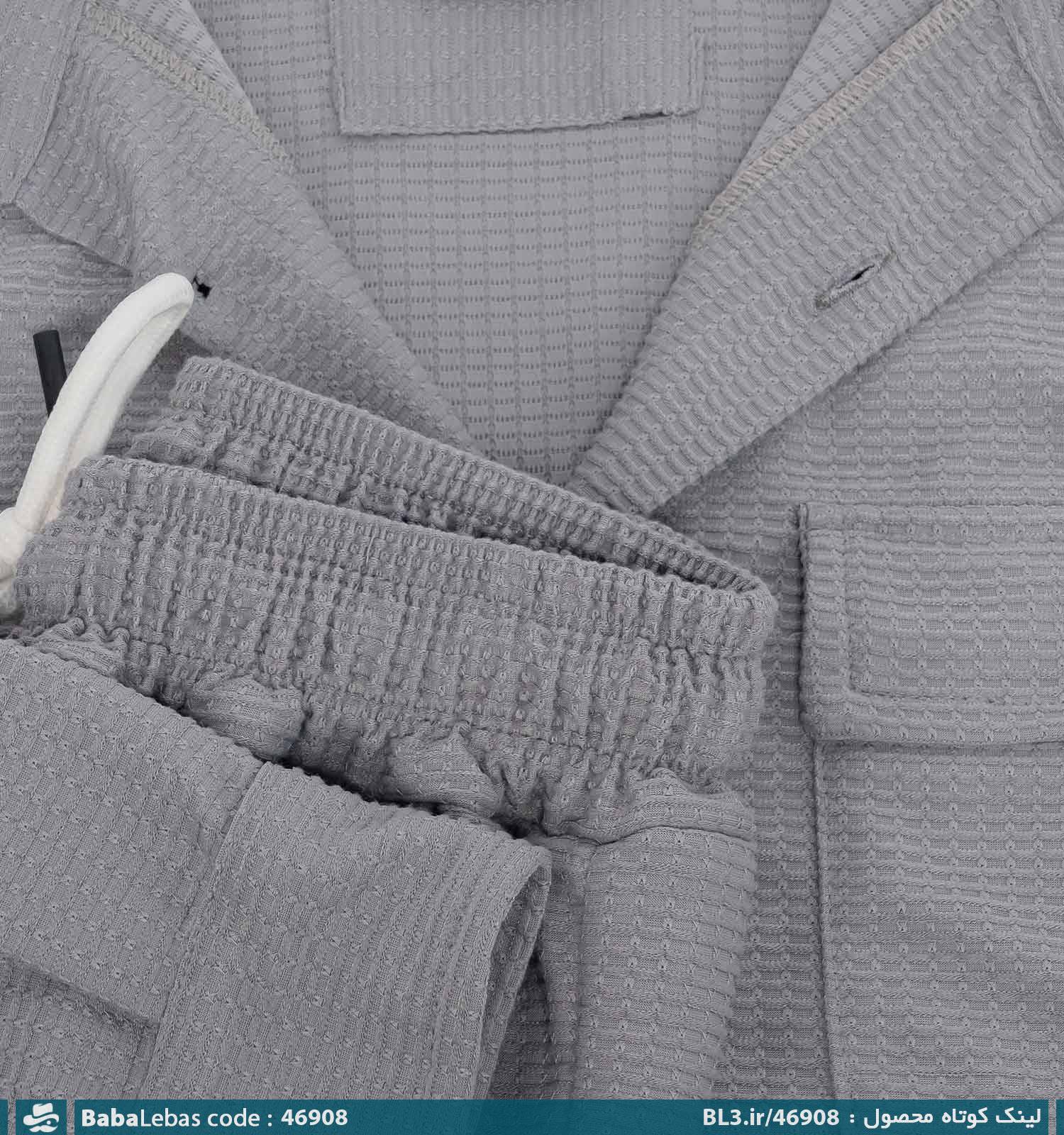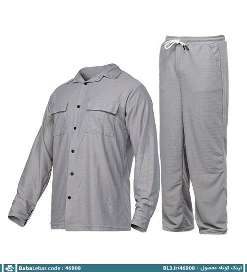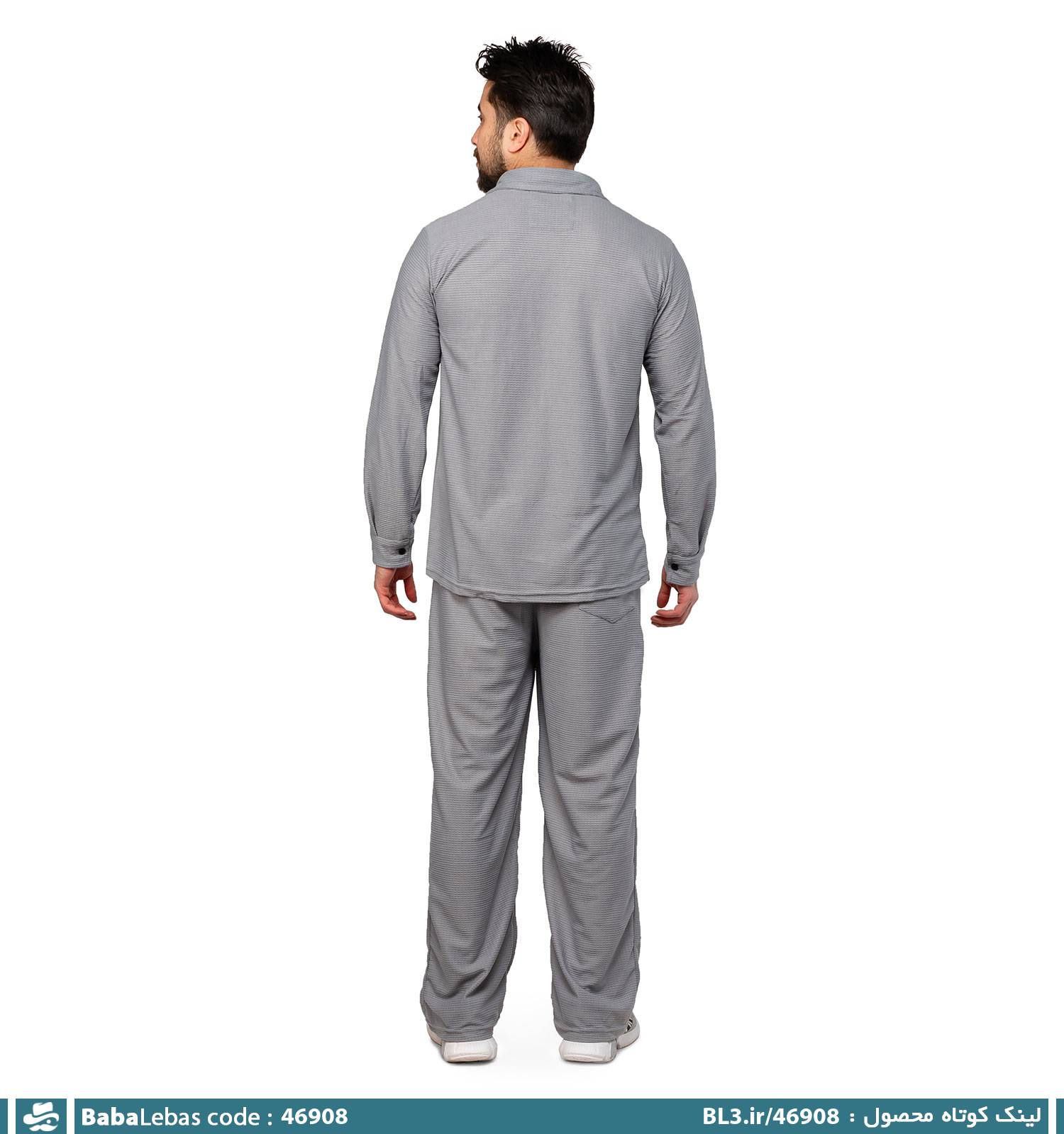 ست مردانه پیراهن و شلوار آستین بلند طوسی بیسکویتی مدل 46908