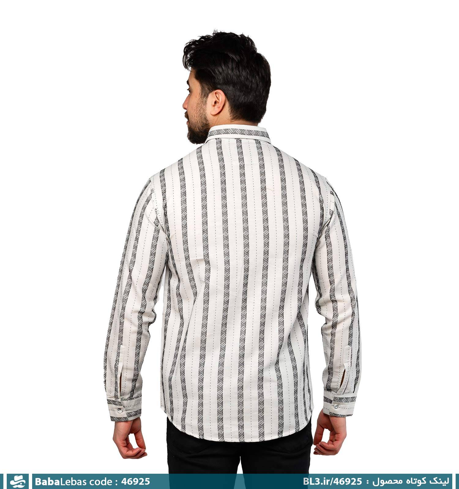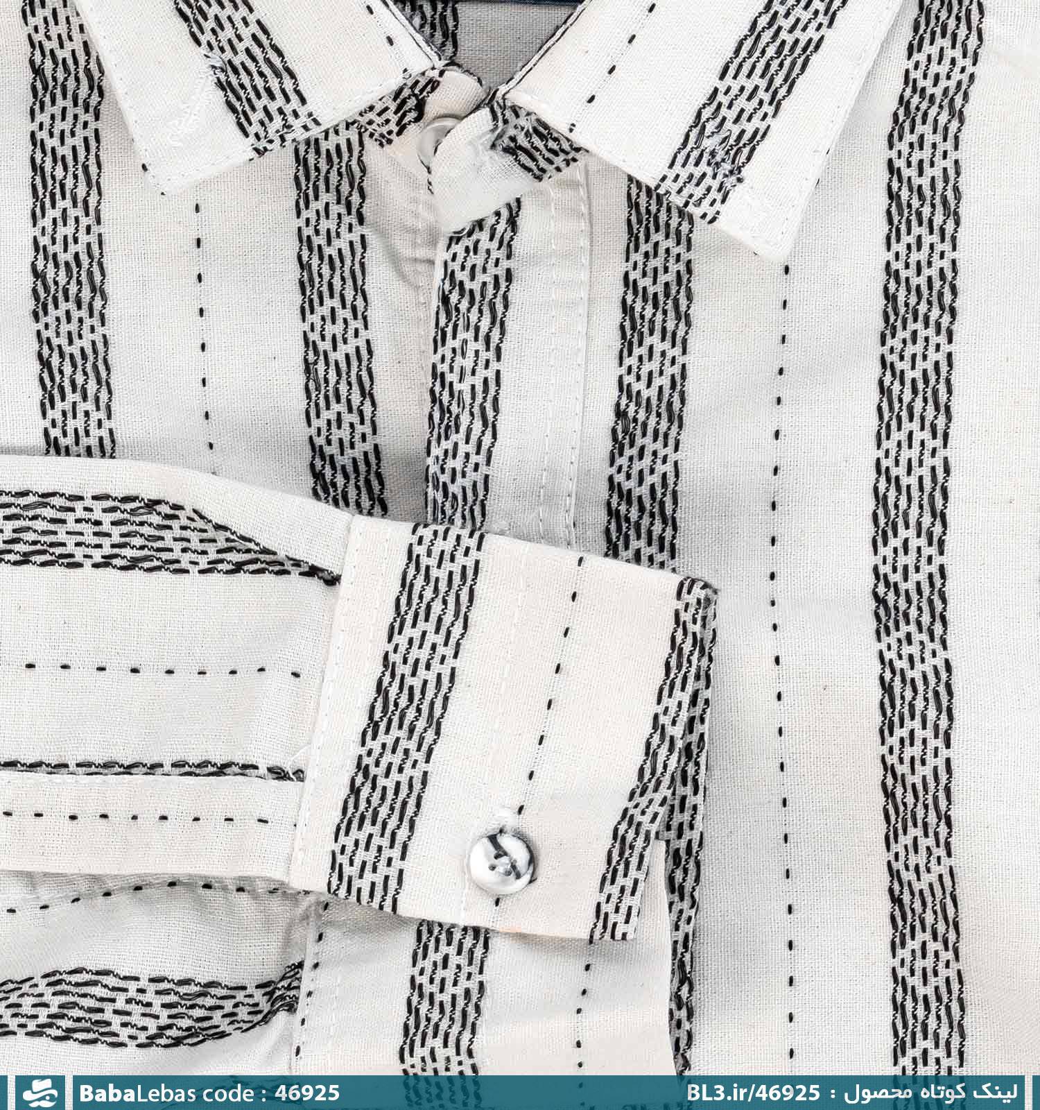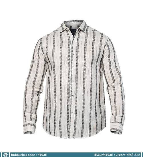 پیراهن لنین یقه پیراهنی مردانه آستین بلند راه راه سفید مشکی مدل 46925