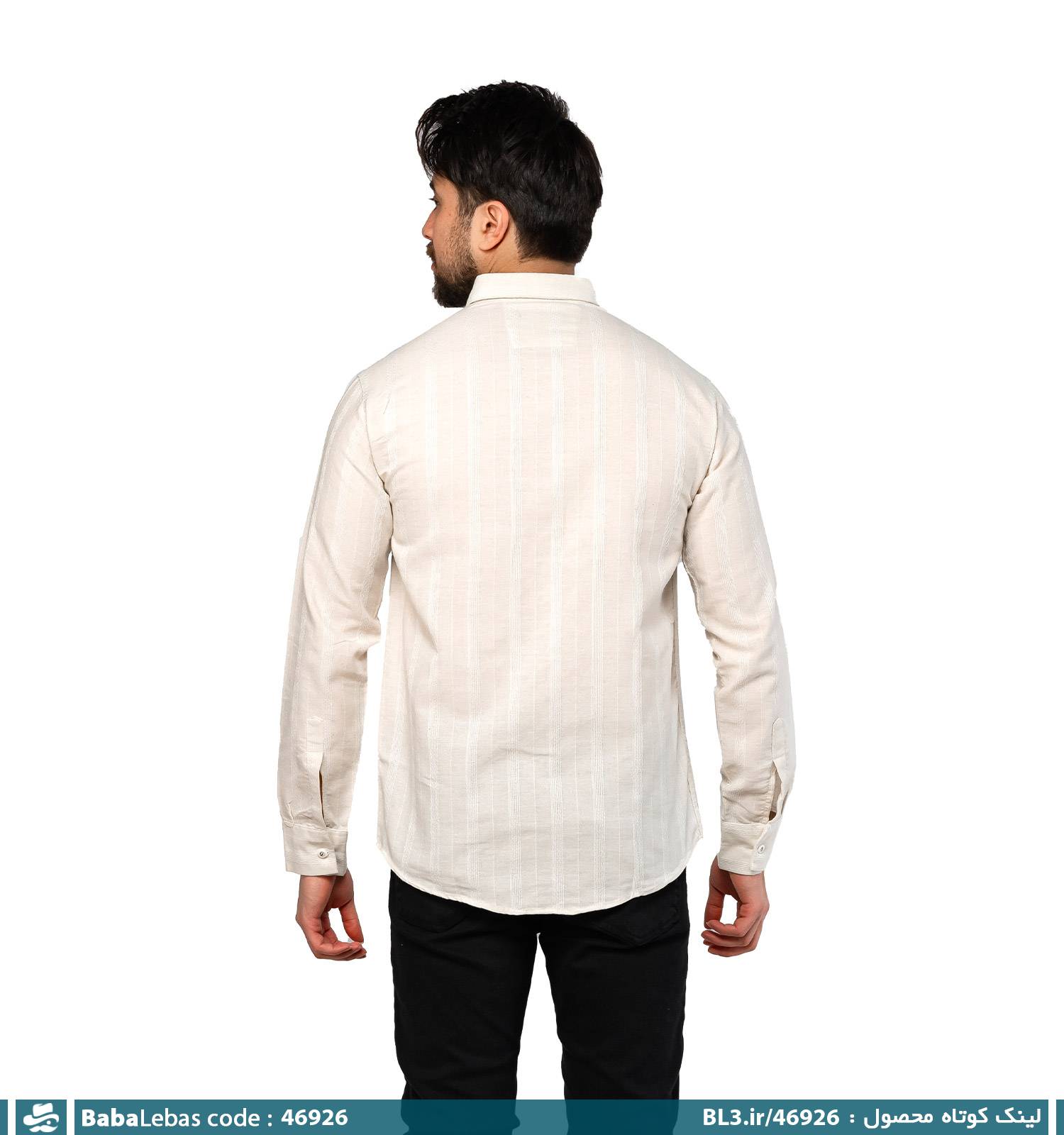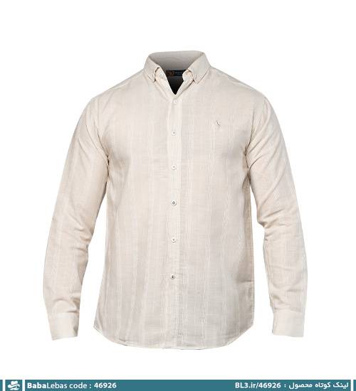 پیراهن لنین یقه پیراهنی مردانه آستین بلند راه راه مدل 46926