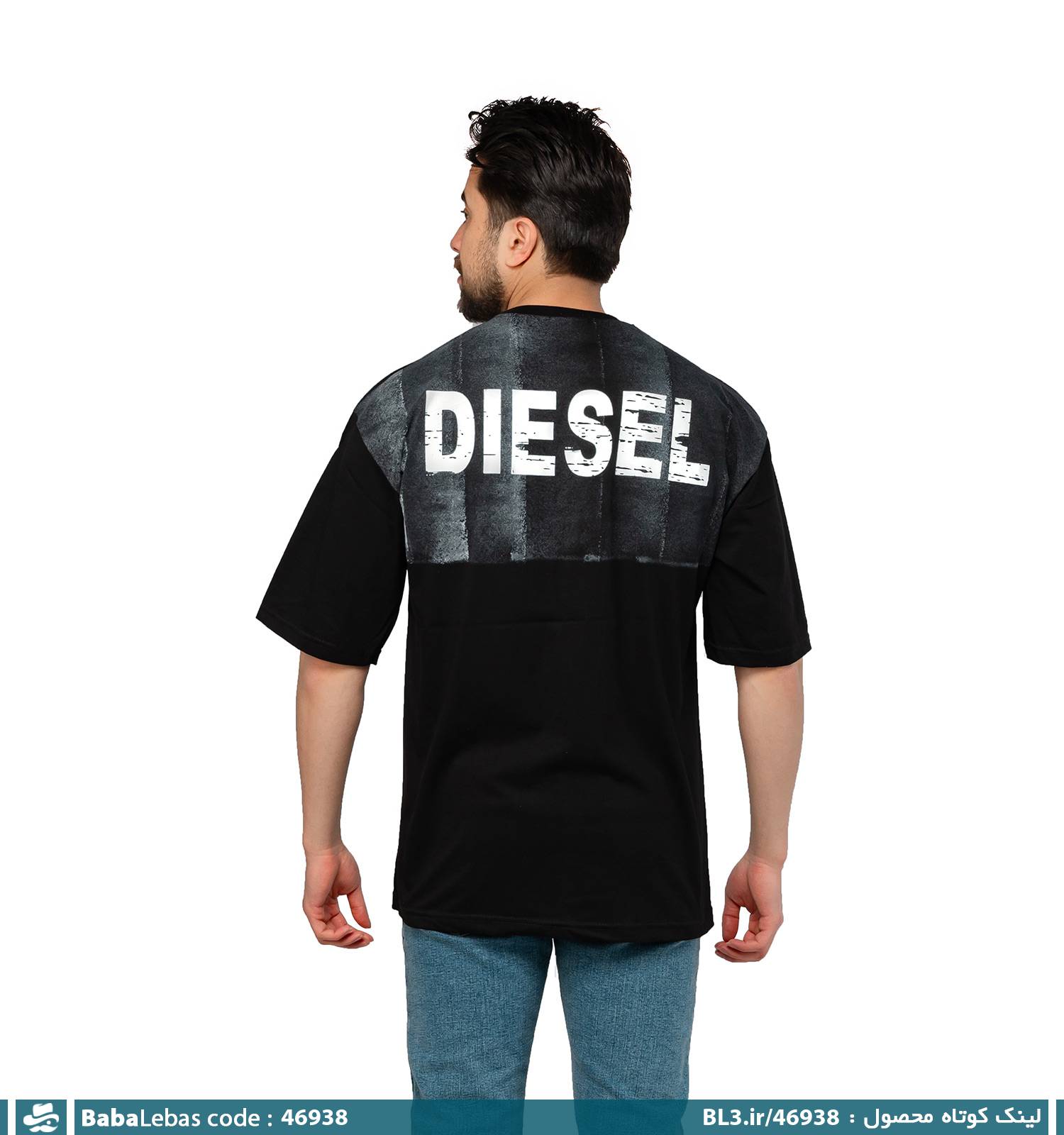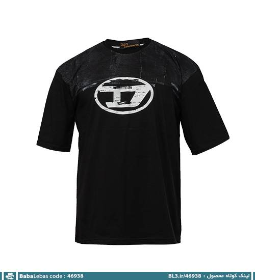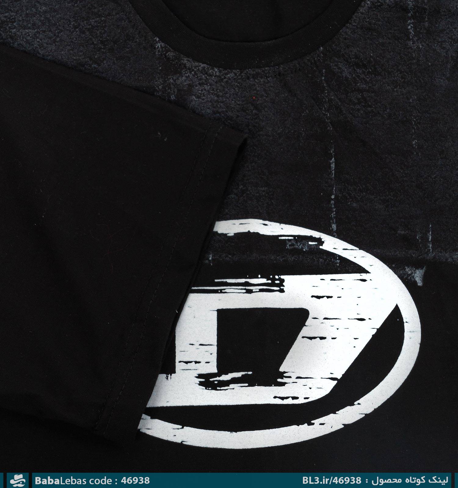 تیشرت لش یقه گرد مردانه مشکی طرح دار مدل 46938
