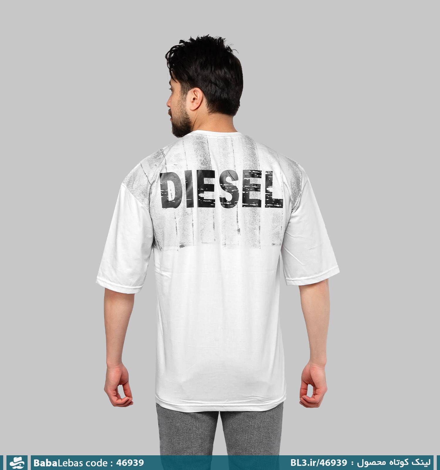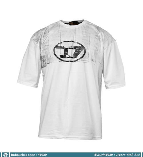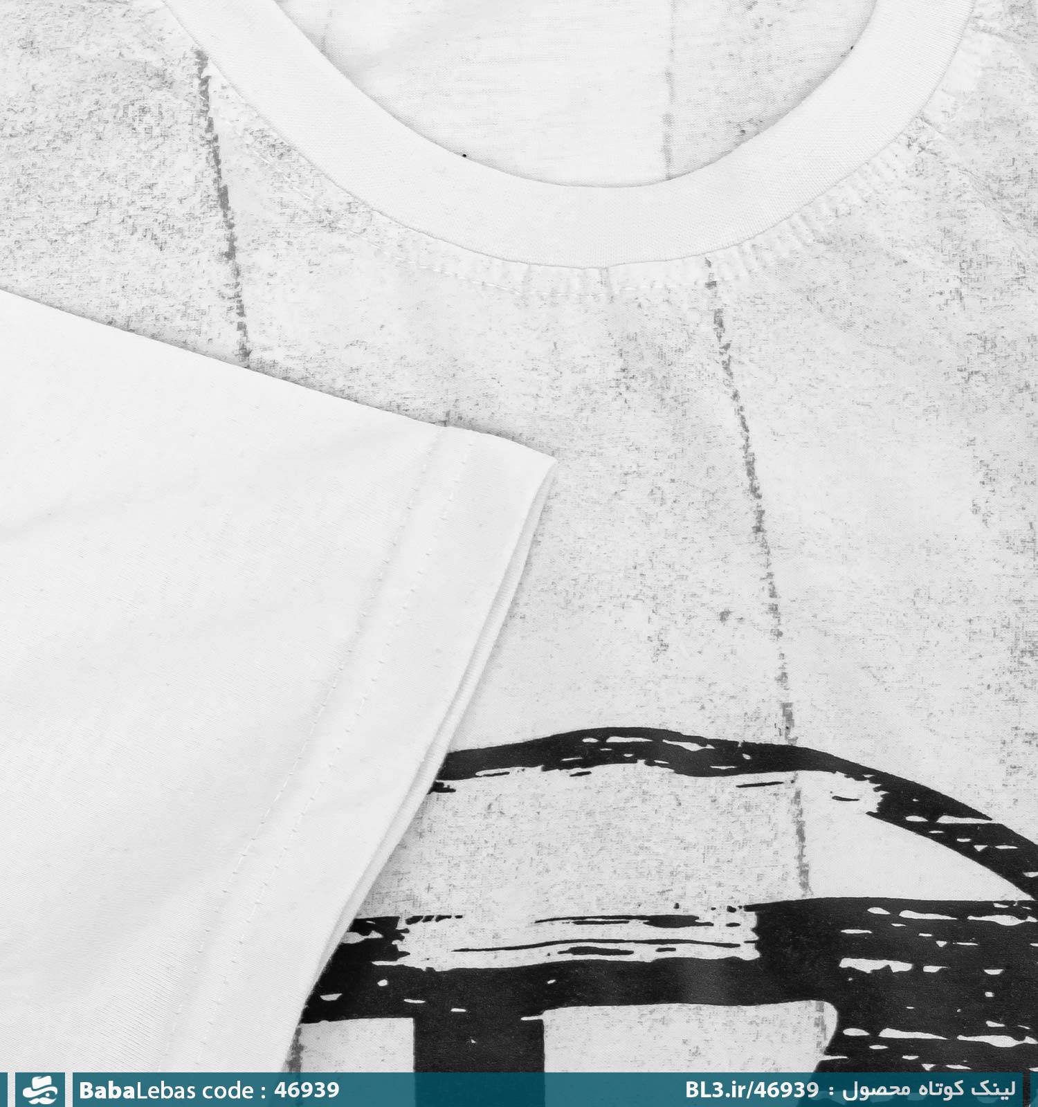 تیشرت لش یقه گرد مردانه سفید طرح دار مدل 46939