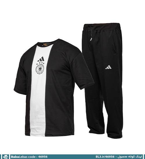 ست تیشرت و شلوار مردانه ورزشی تیم ملی آلمان سفید مشکی یقه گرد مدل 46956