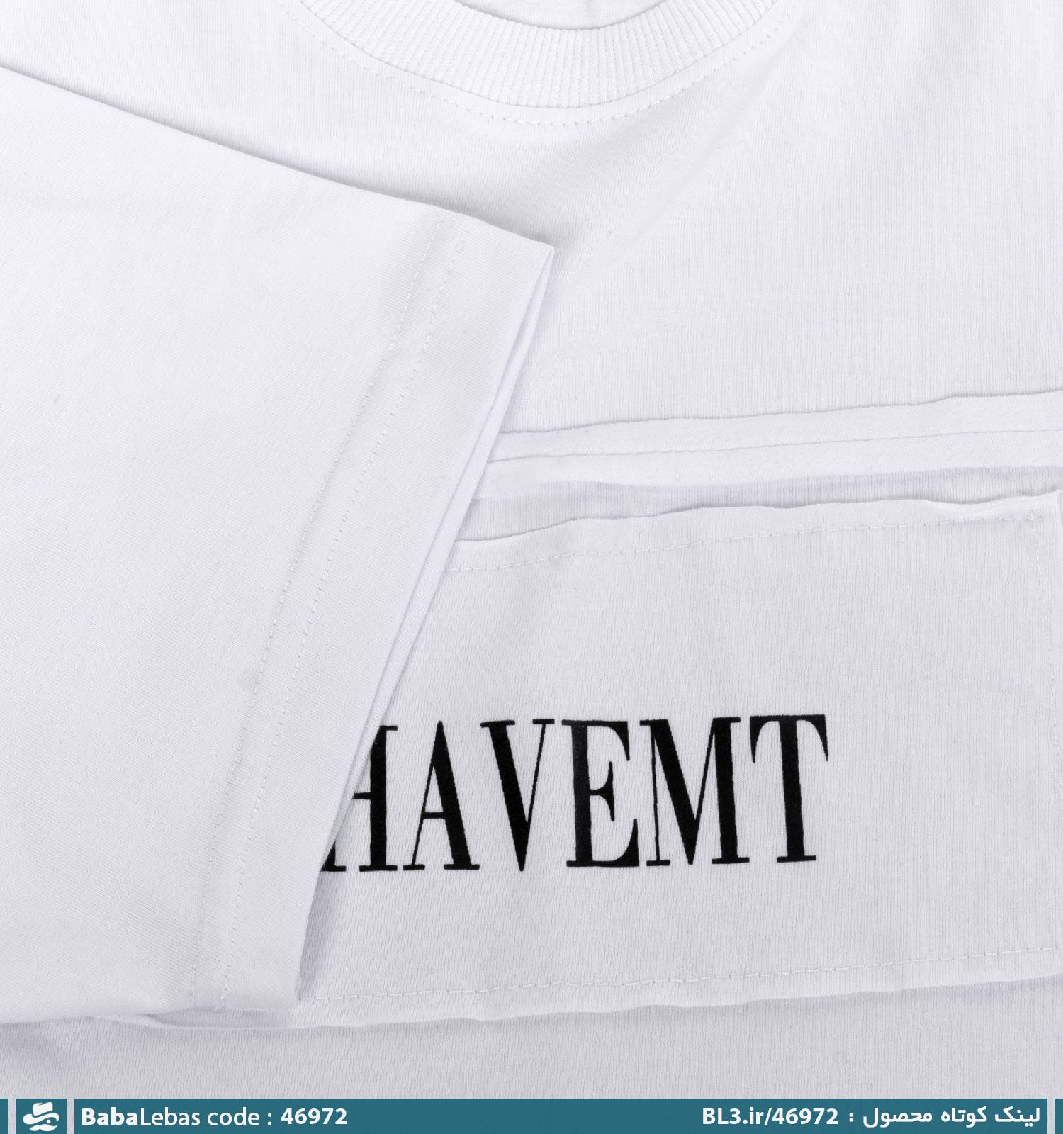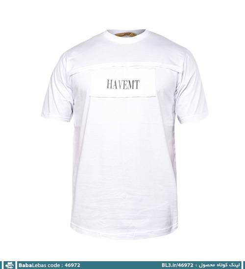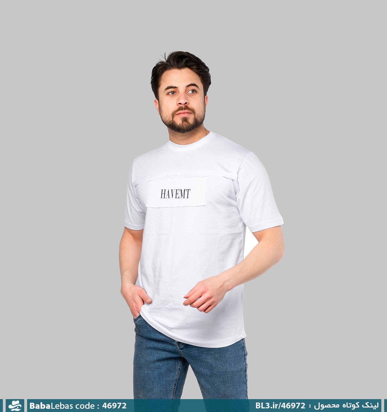 تیشرت یقه گرد مردانه تیکه دوزی سفید مدل 46972