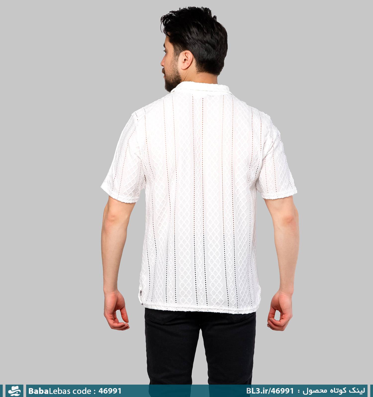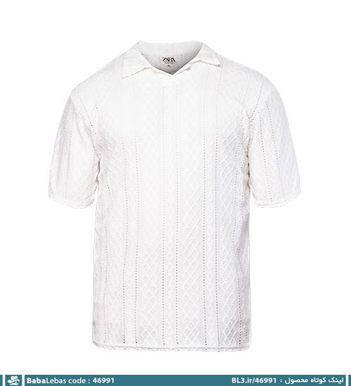 تیشرت یقه دار مردانه سفید طرح دار مدل 46991