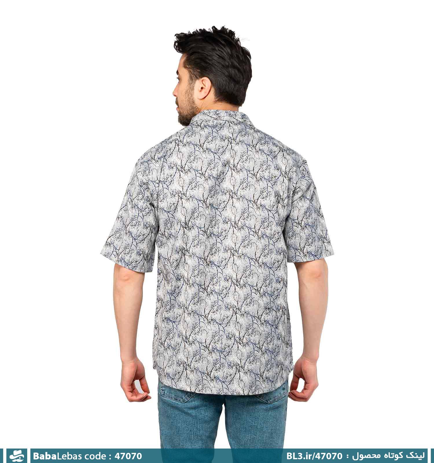 پیراهن کنفی مردانه نیم آستین طرح دار مدل 47070