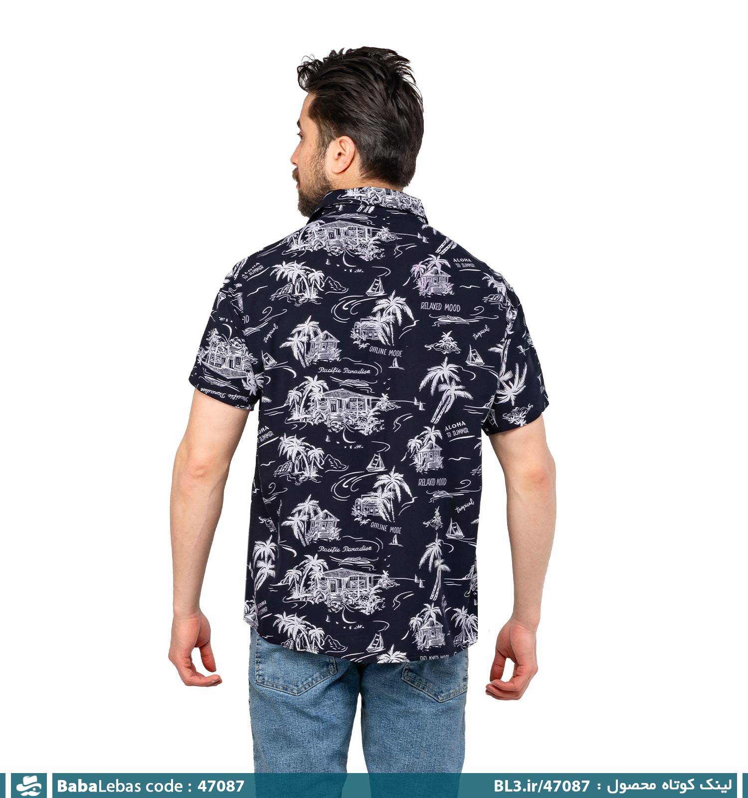پیراهن مردانه نیم آستین هاوایی مدل 47087