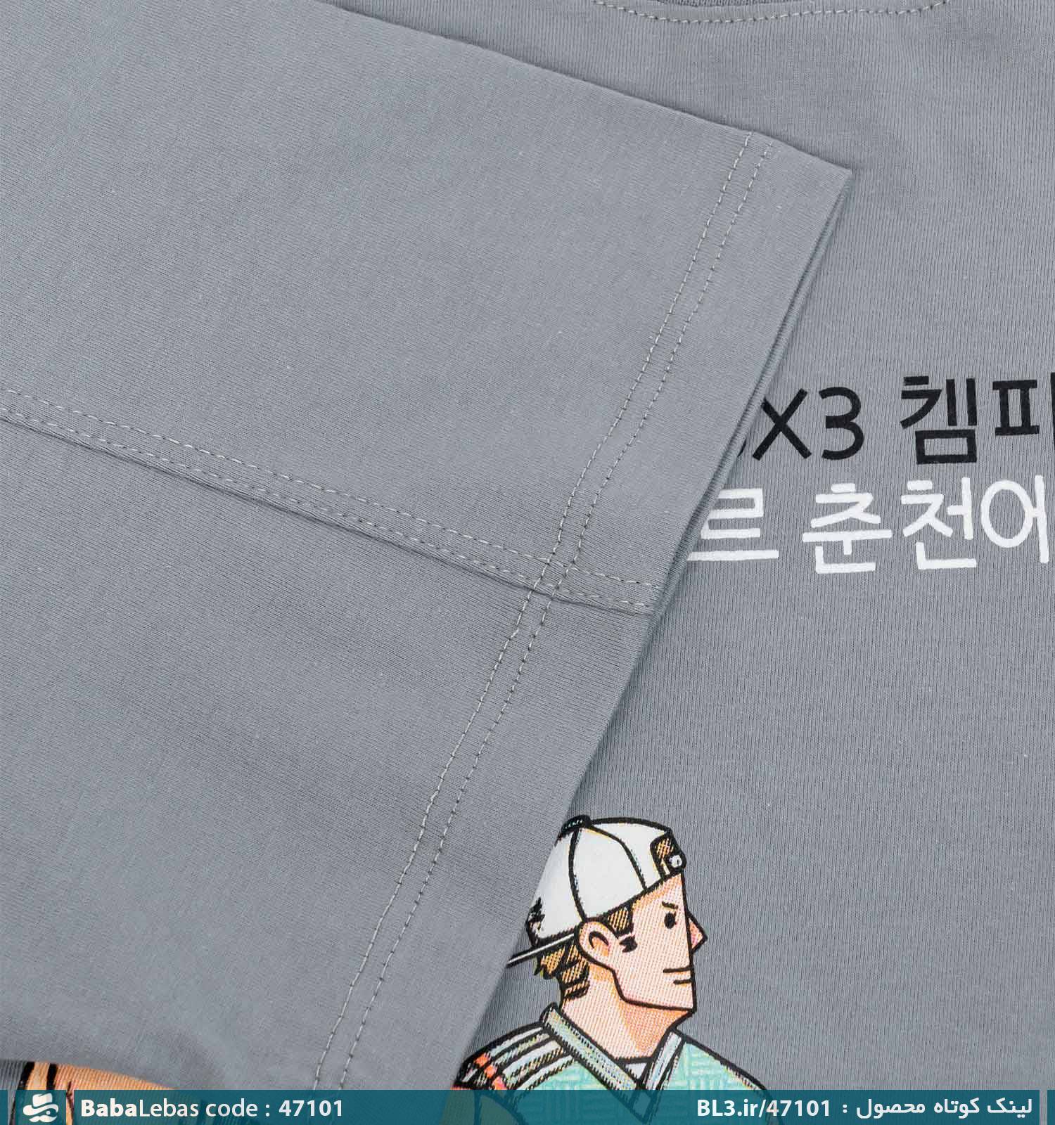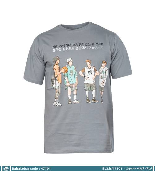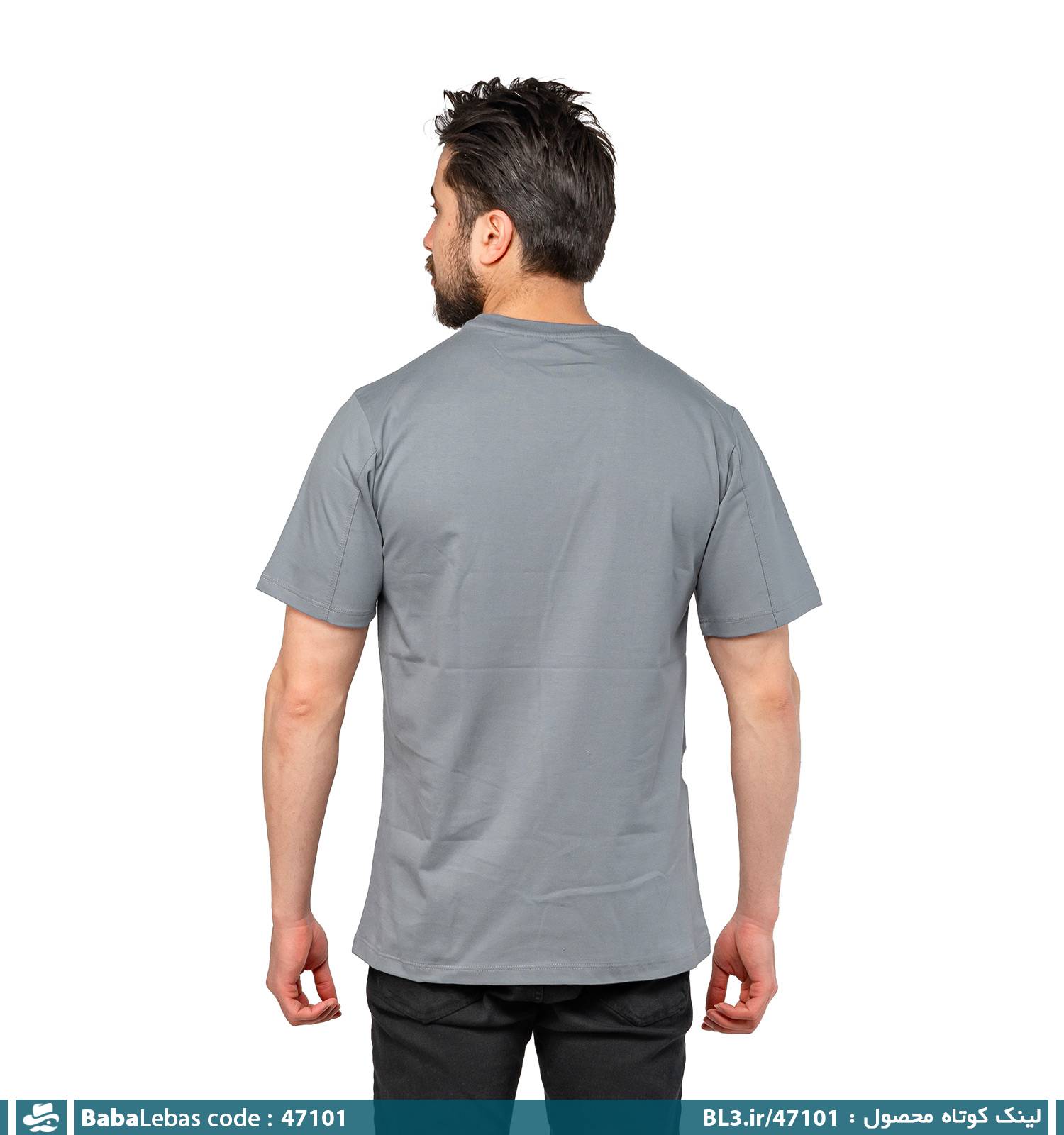 تیشرت یقه گرد مردانه طوسی طرح دار مدل 47101