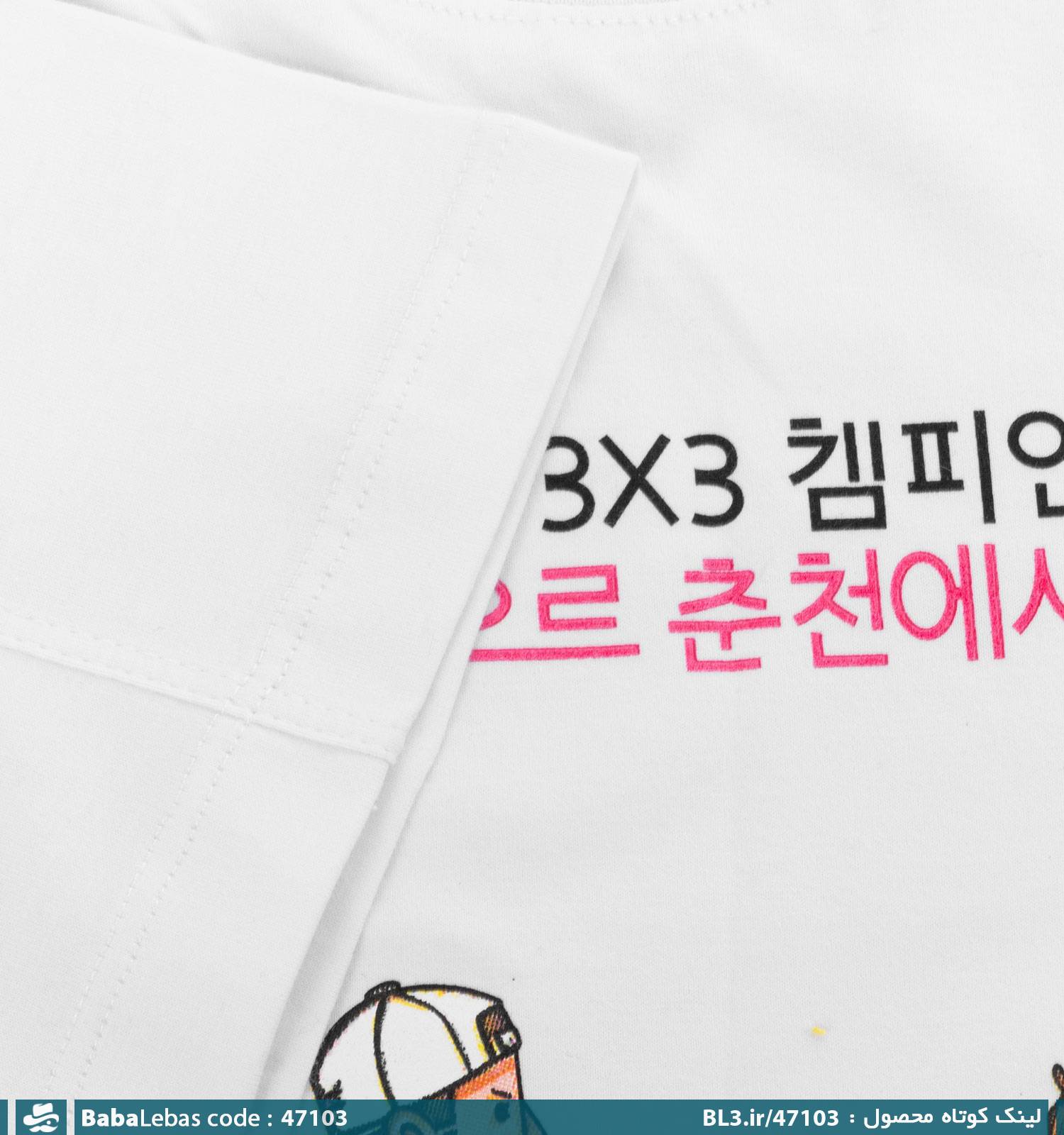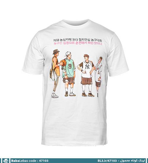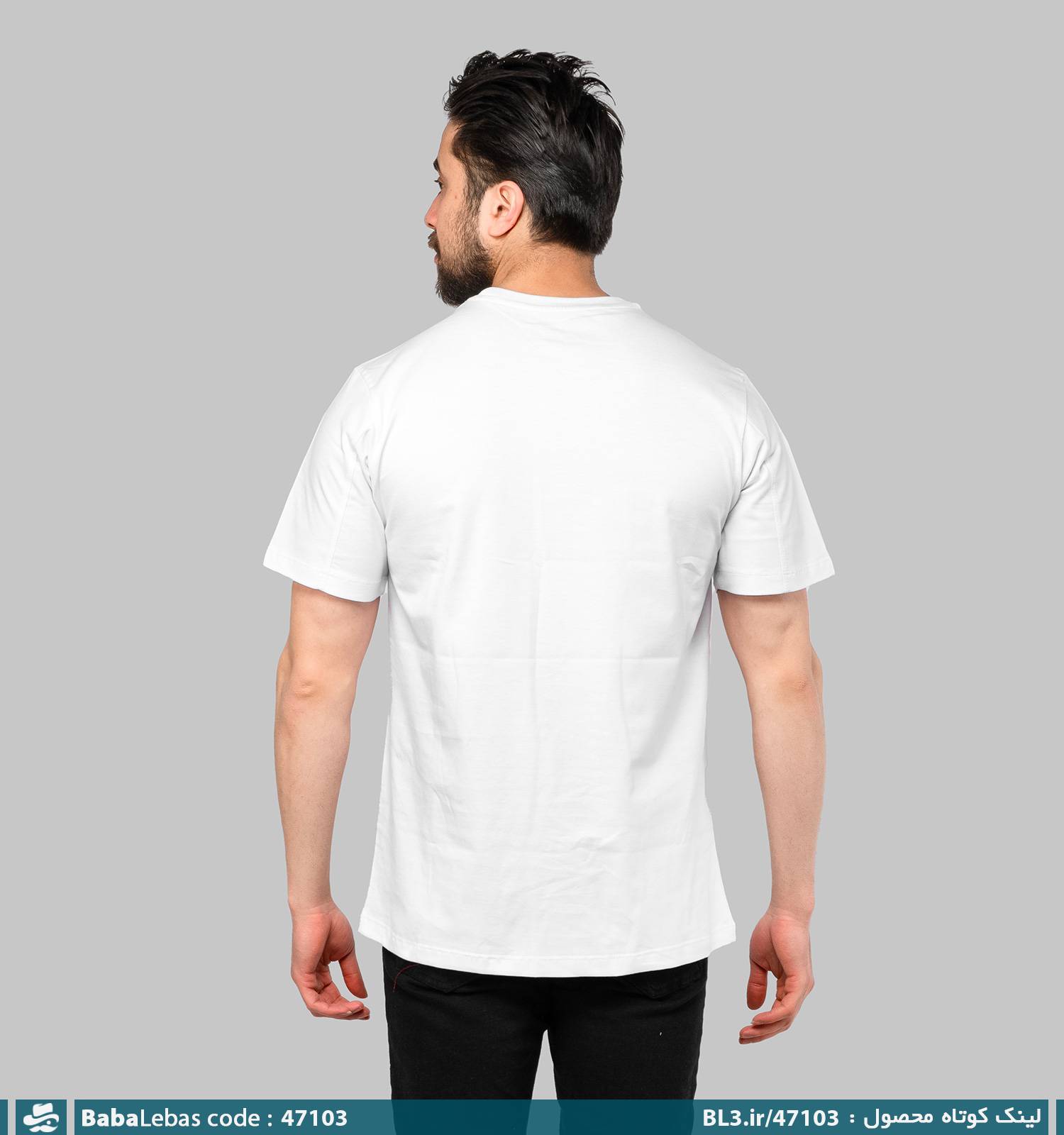تیشرت یقه گرد مردانه سفید طرح دار مدل 47103