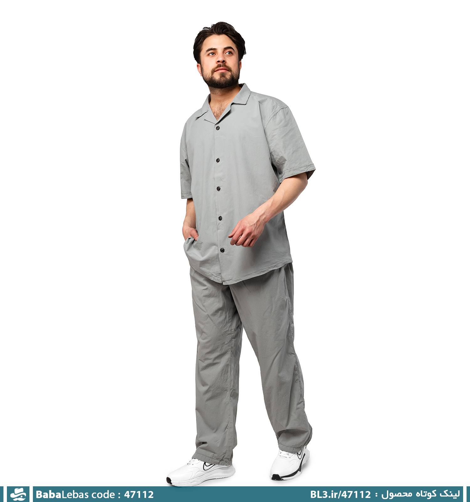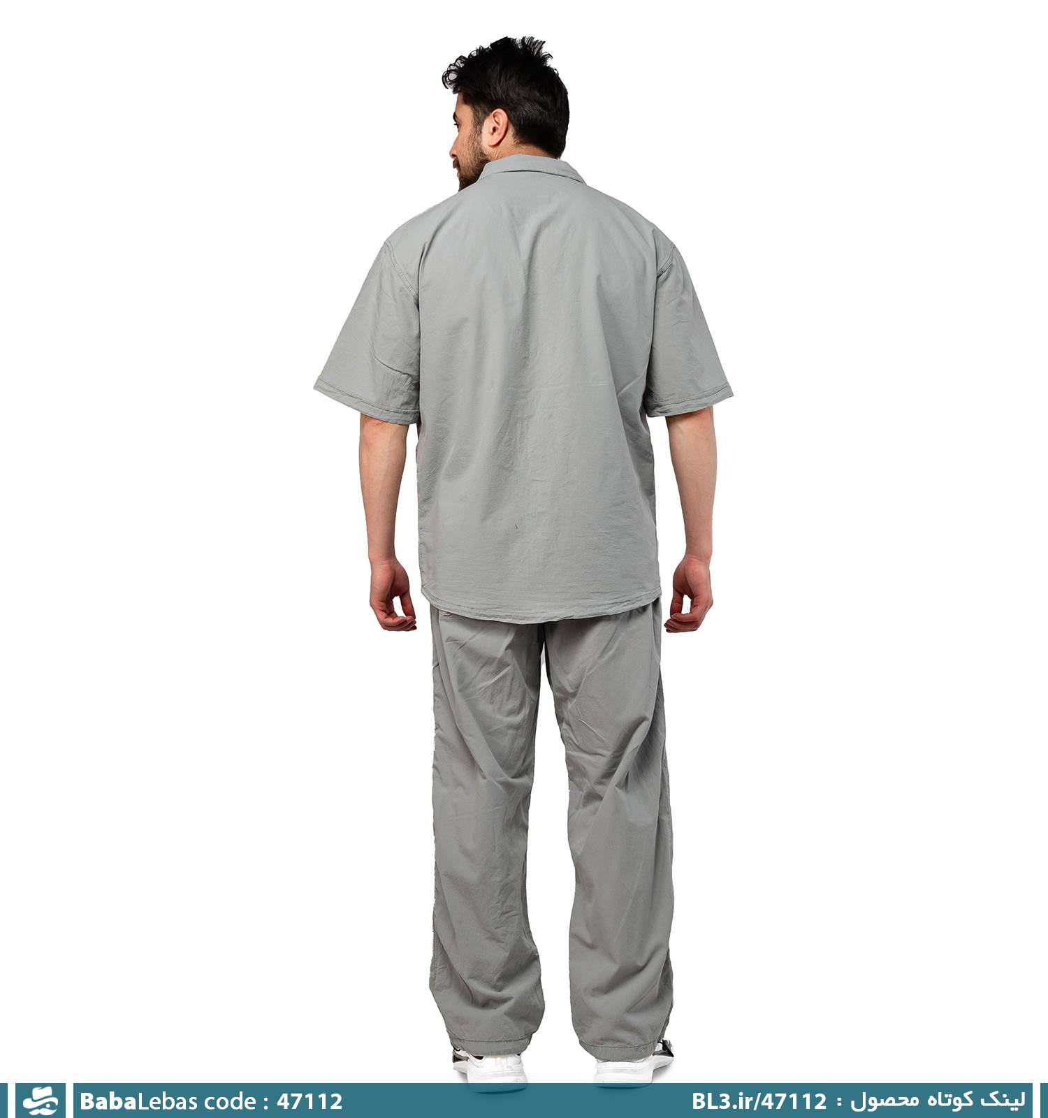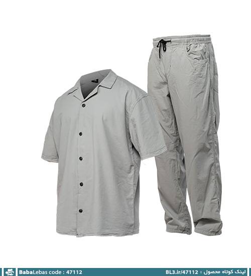 ست مردانه پیراهن و شلوار پنبه آستین کوتاه طوسی ساده مدل 47112