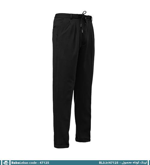 شلوار مام فیت مردانه مشکی دو پیله بنددار مدل 47125
