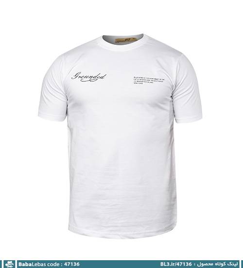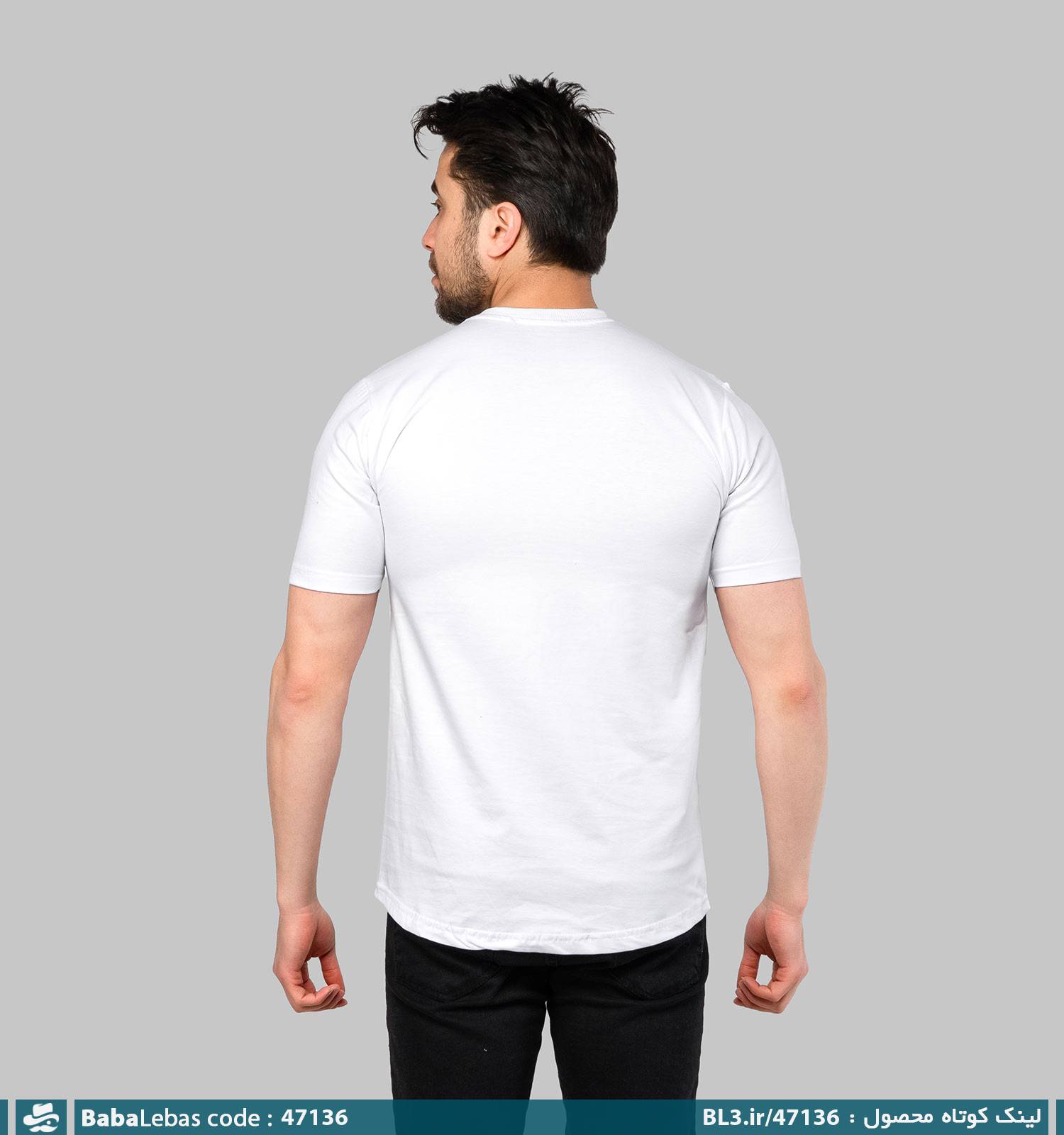 تیشرت یقه گرد مردانه سفید طرح دار مدل 47136